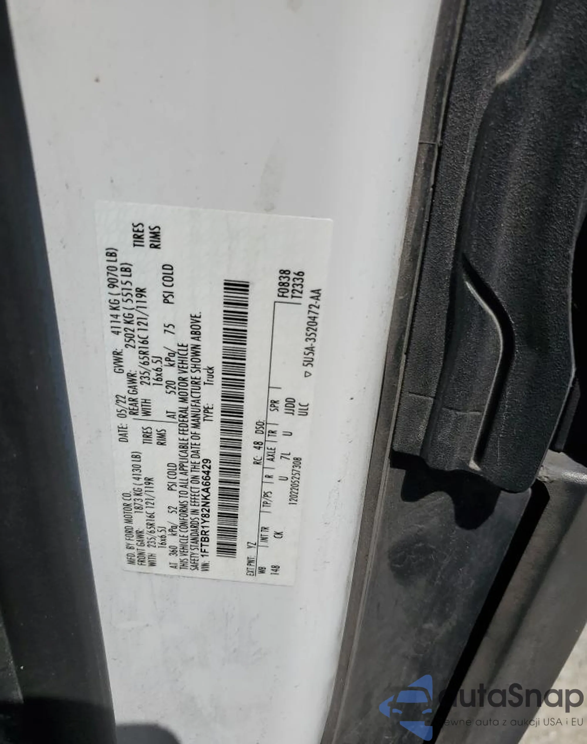 • VIN 1FTBR1Y82NKA66429