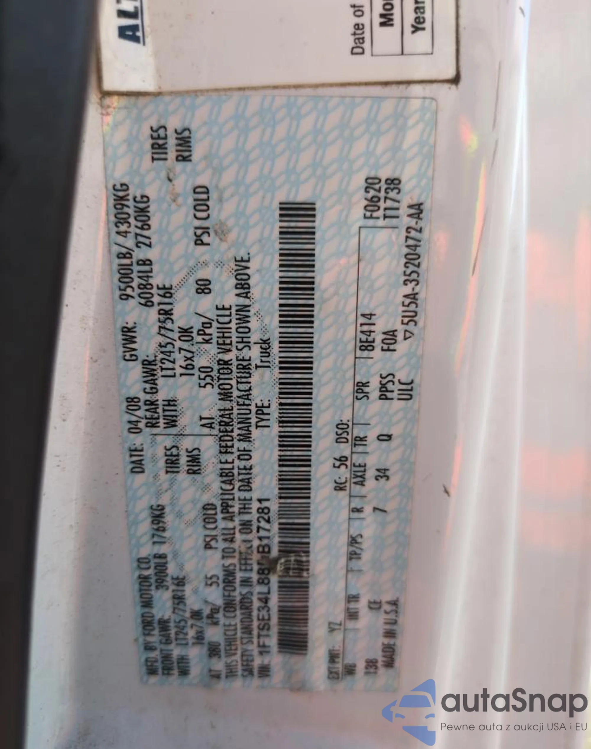 LOT: 64052445 VIN: 1FTSE34L88DB17281