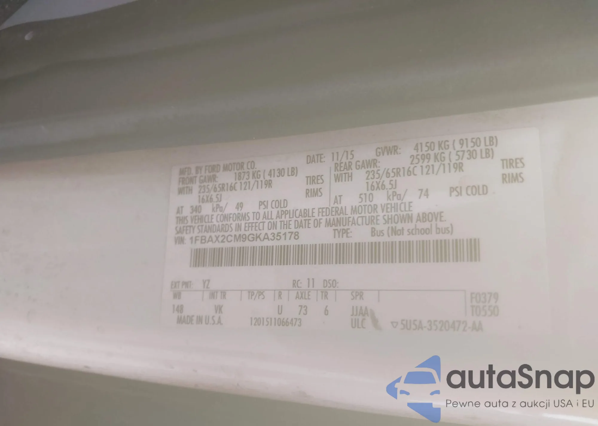 LOT: 42898043 VIN: WBA3B5G51DNS02664