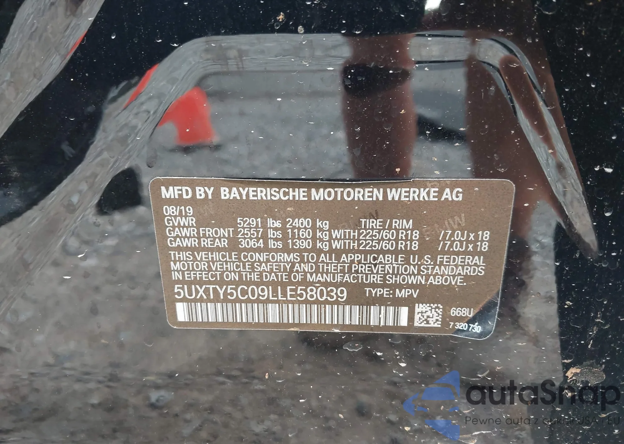 LOT: 42974210 VIN: WBA8E5G58JNV03120