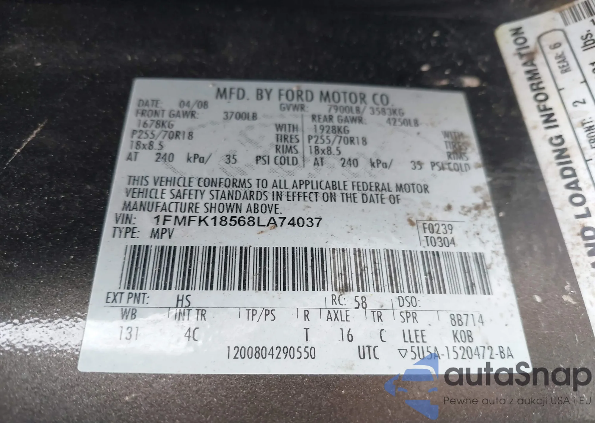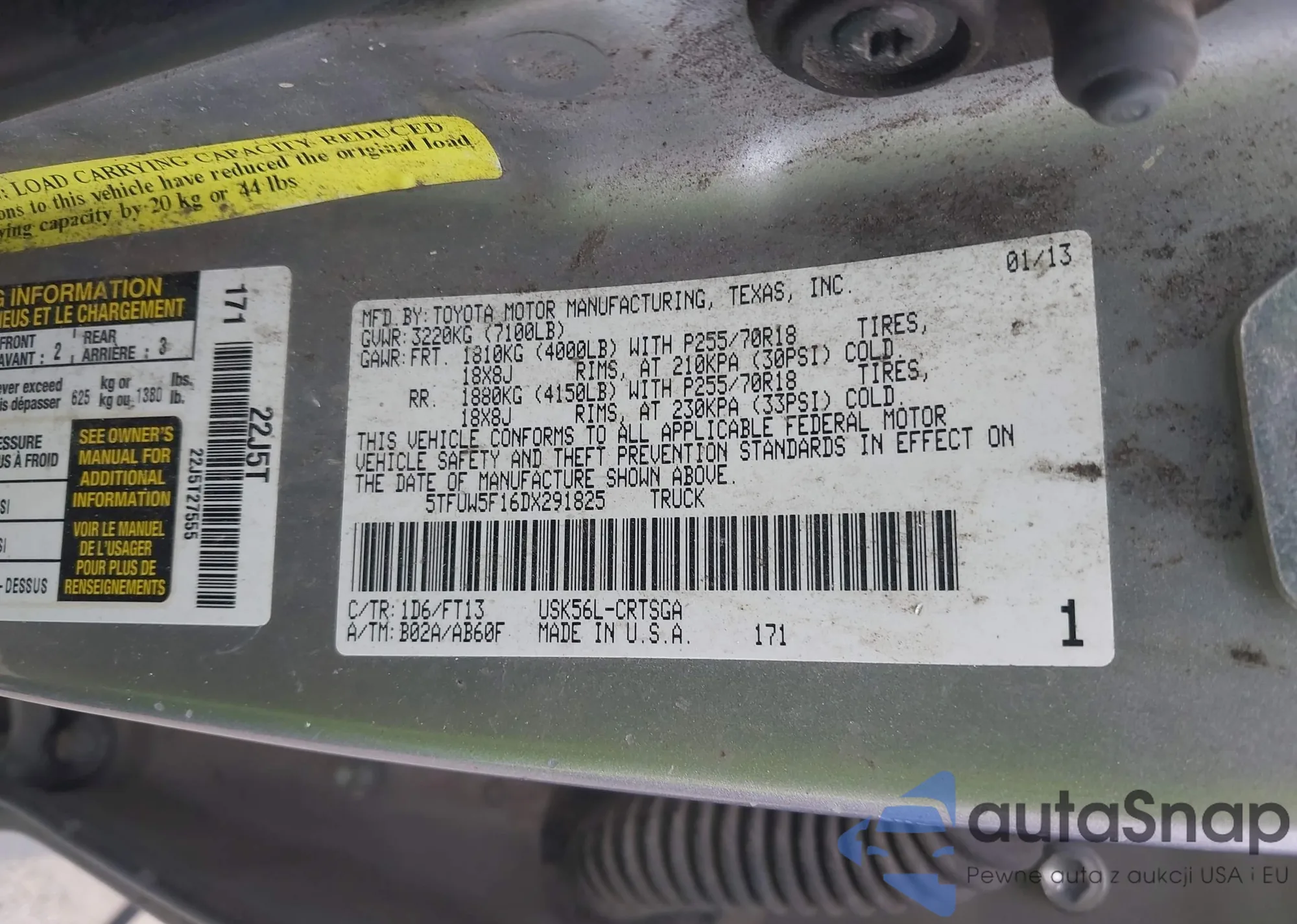 • VIN 5TFUW5F16DX291825
