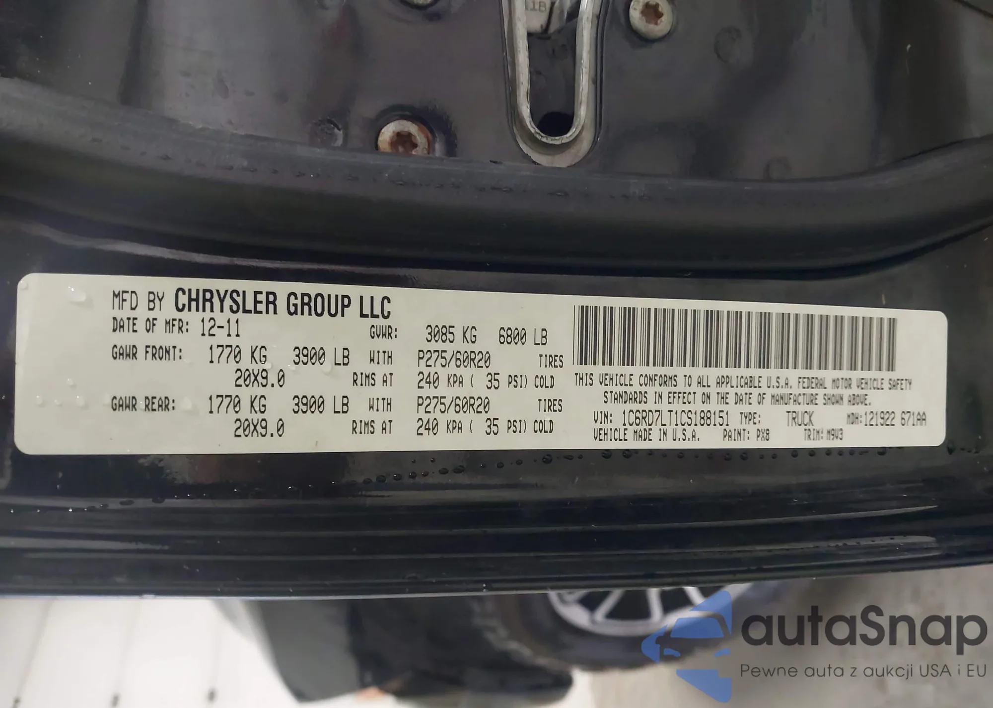 • VIN 1C6RD7LT1CS188151