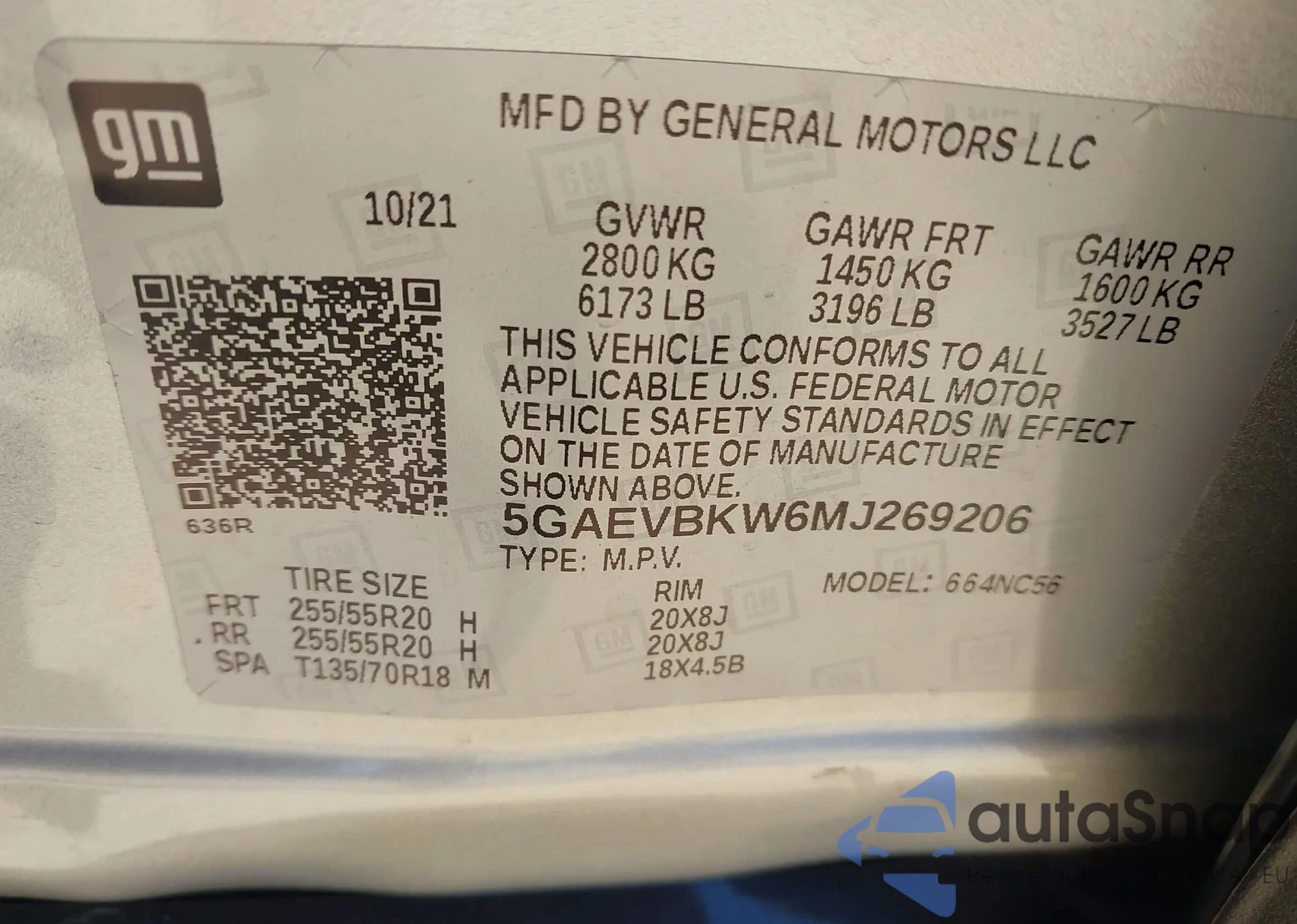 • VIN 5GAEVBKW6MJ269206