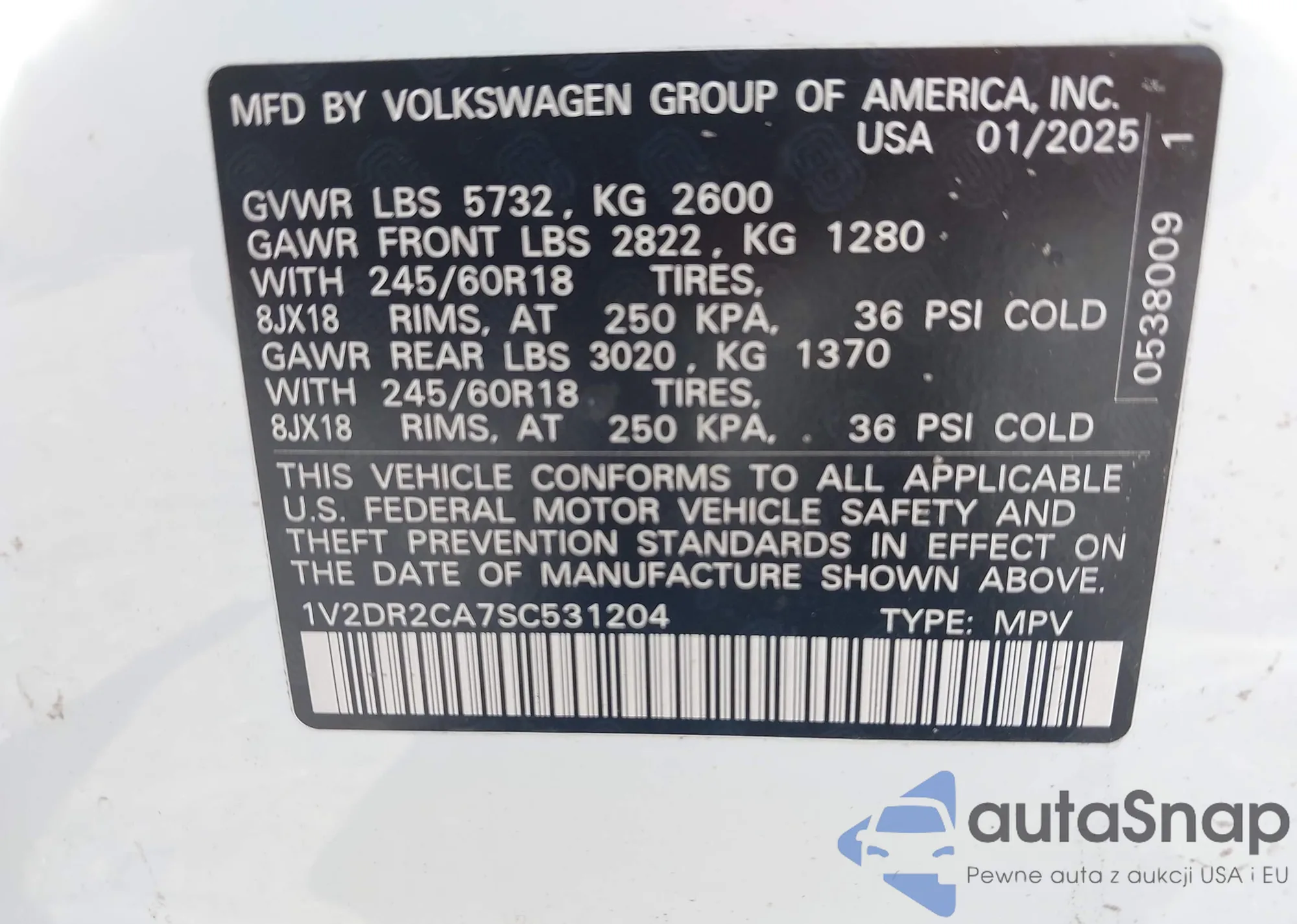 • VIN 1V2DR2CA7SC531204