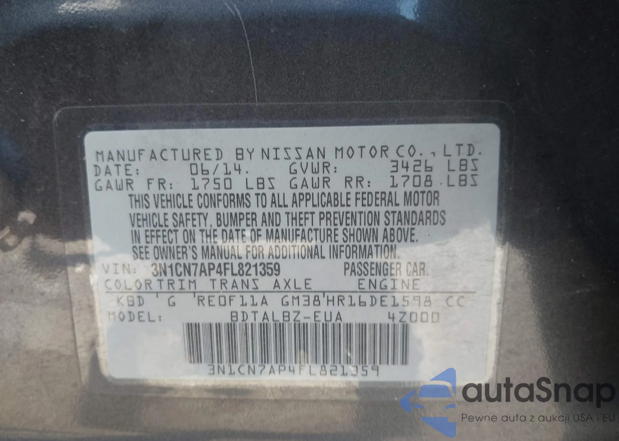 • VIN 3N1CN7AP4FL821359