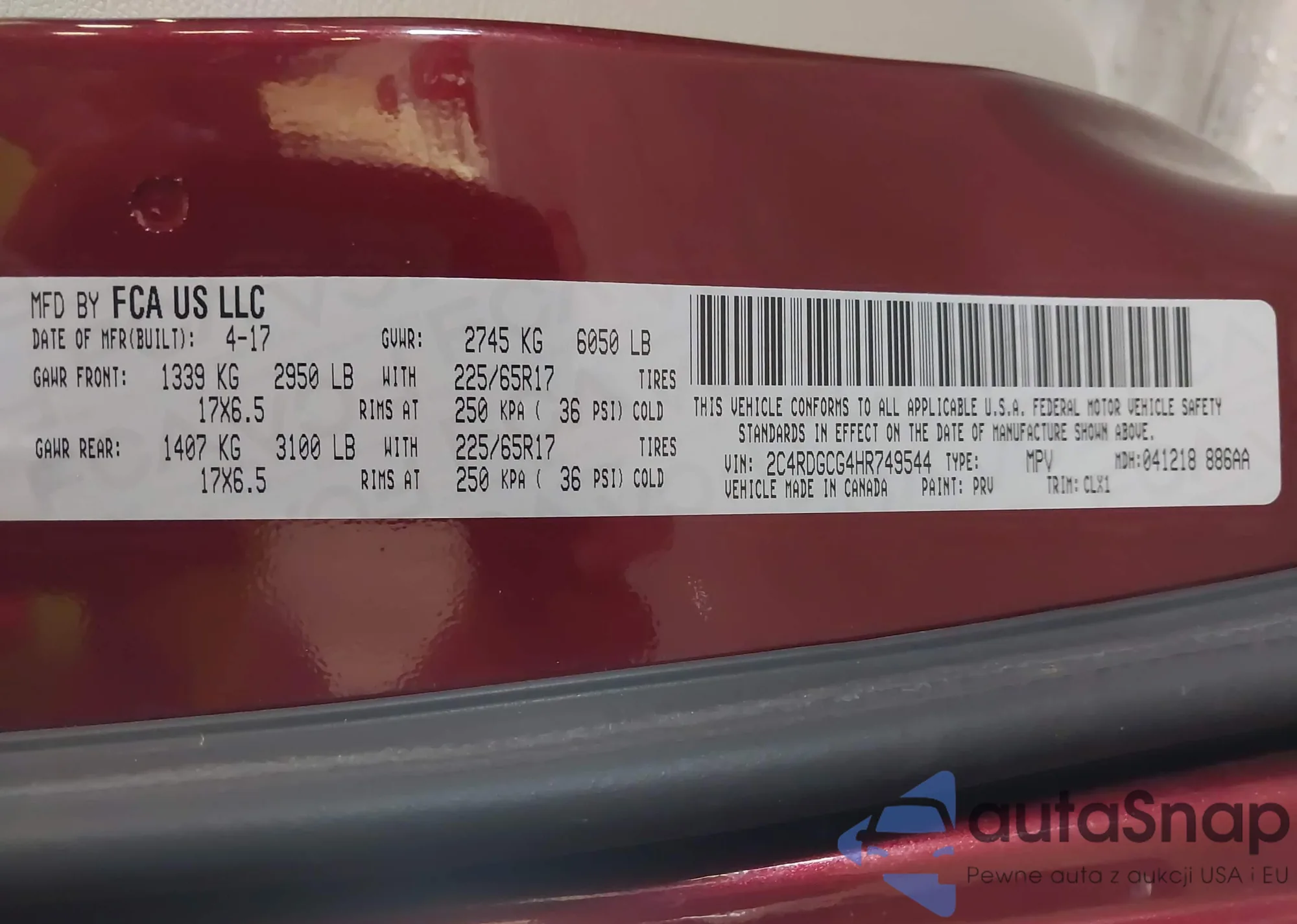• VIN 2C4RDGCG4HR749544