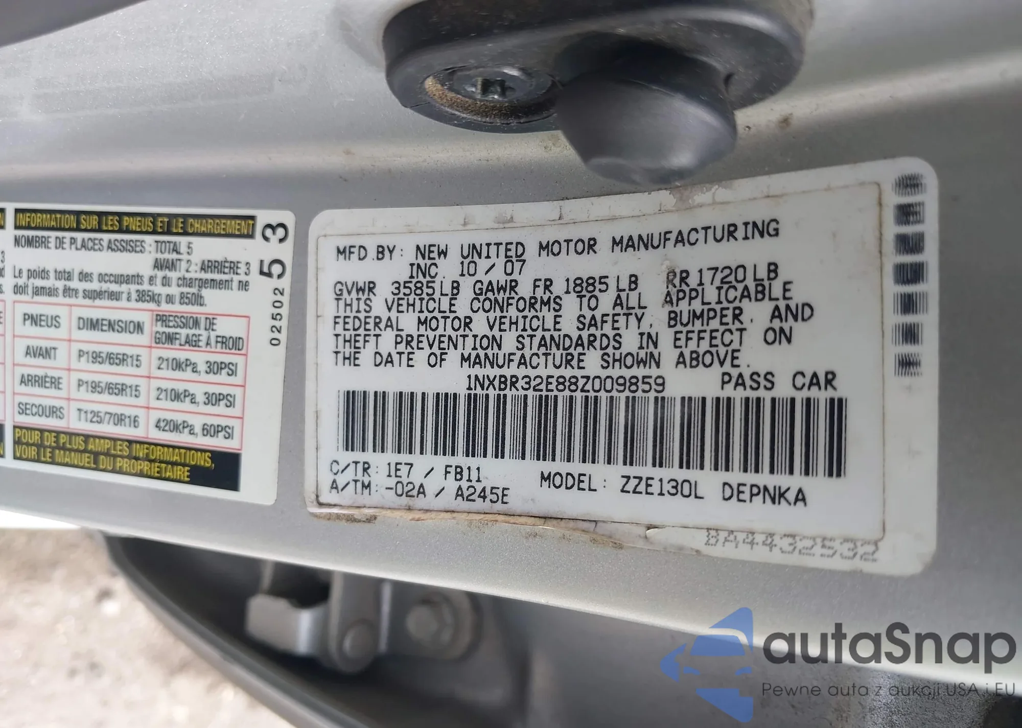 • VIN 1NXBR32E88Z009859