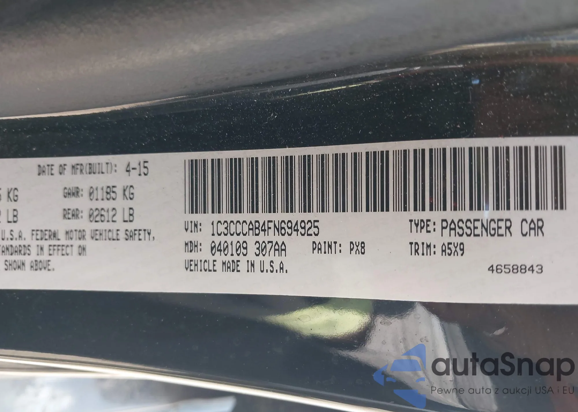 • VIN 1C3CCCAB4FN694925