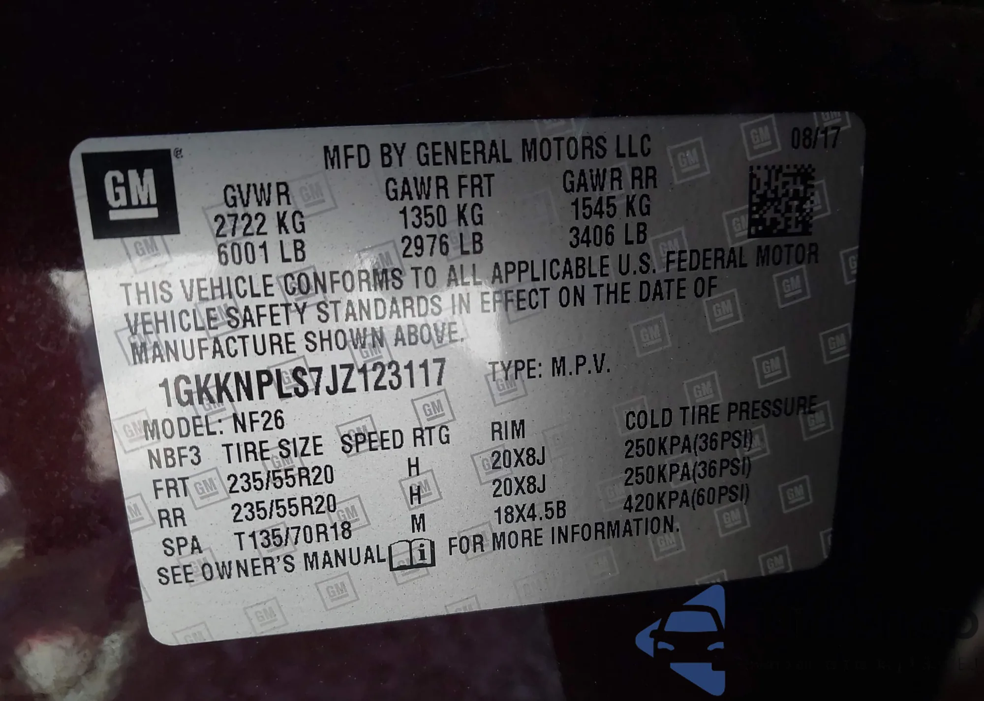 • VIN 1GKKNPLS7JZ123117