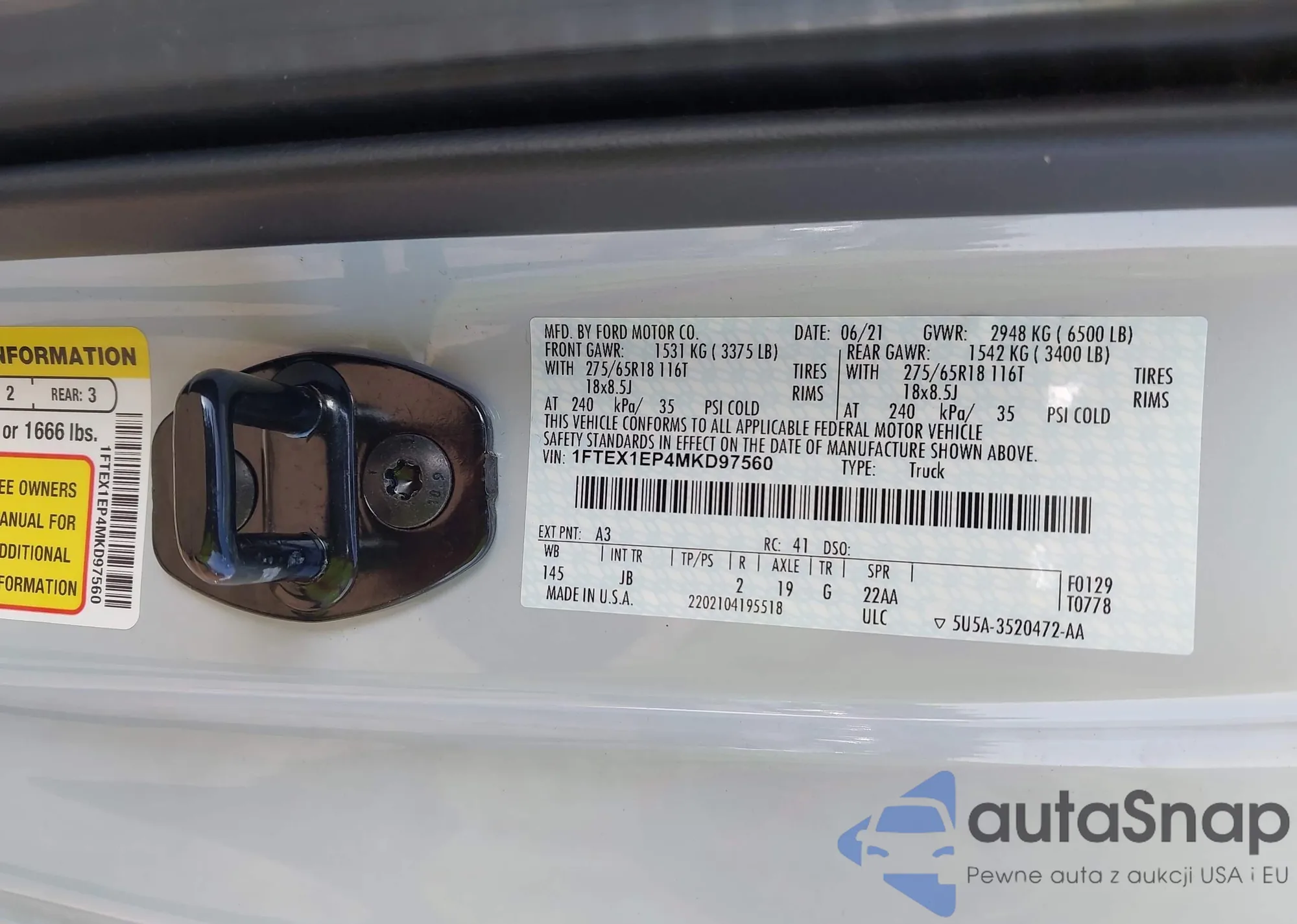 LOT: 43006065 VIN: 1FTEX1EP4MKD97560