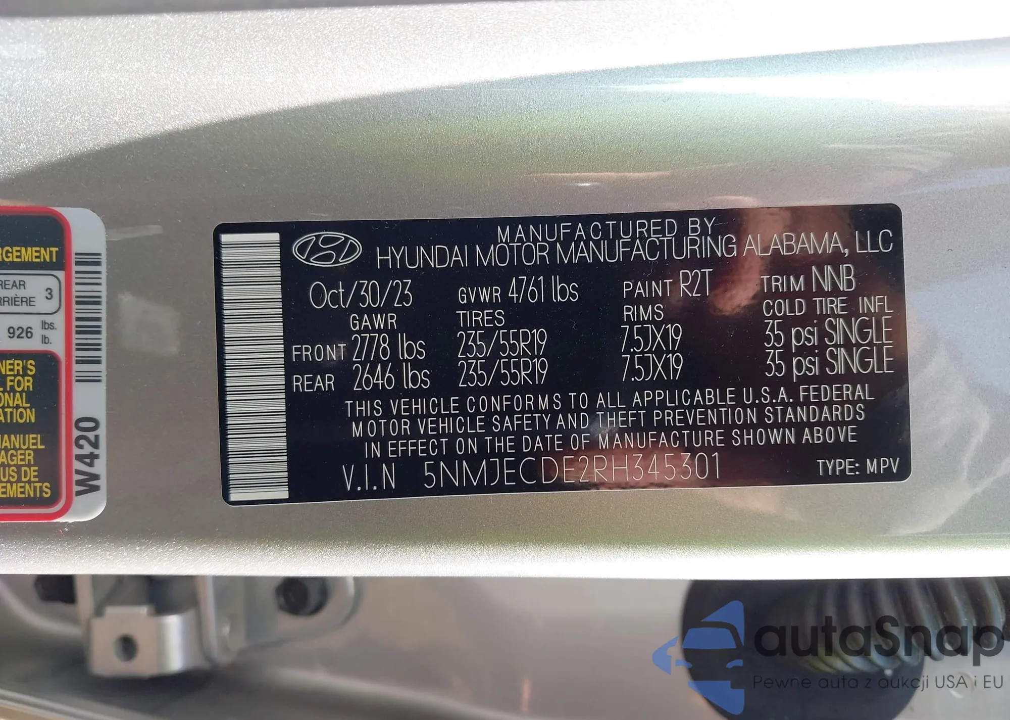• VIN 5NMJECDE2RH345301