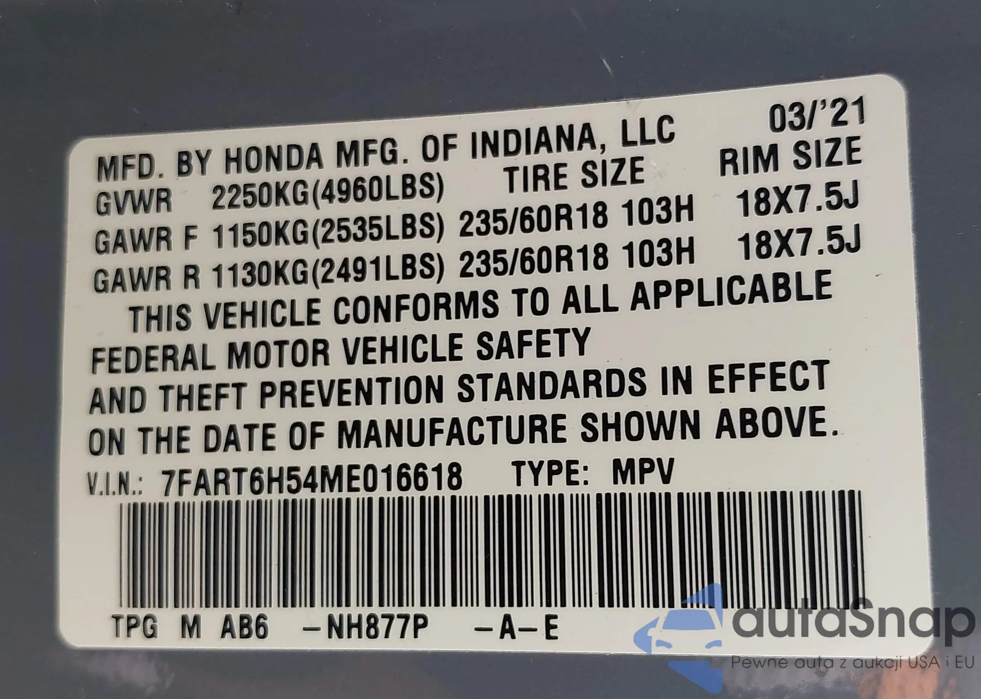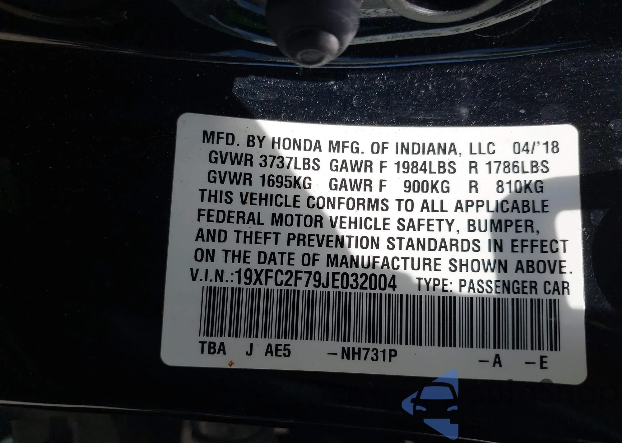 • VIN 5FNRL6H70KB002077