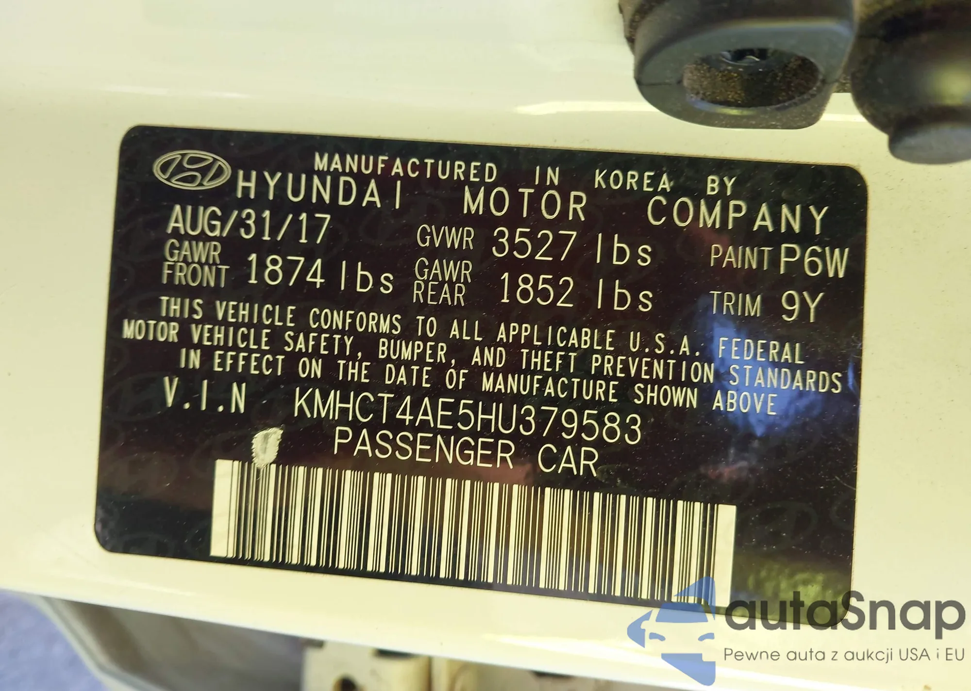 • VIN KMHCT4AE5HU379583