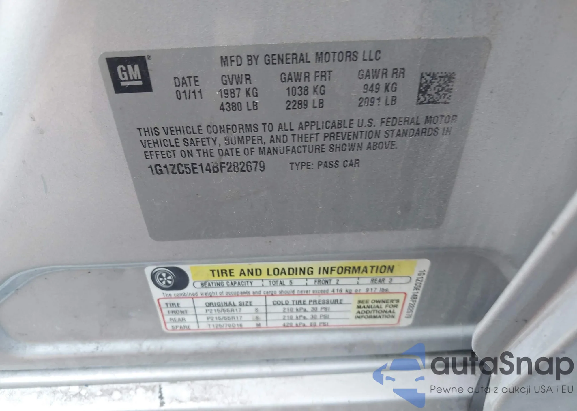 • VIN 1G1ZC5E14BF282679