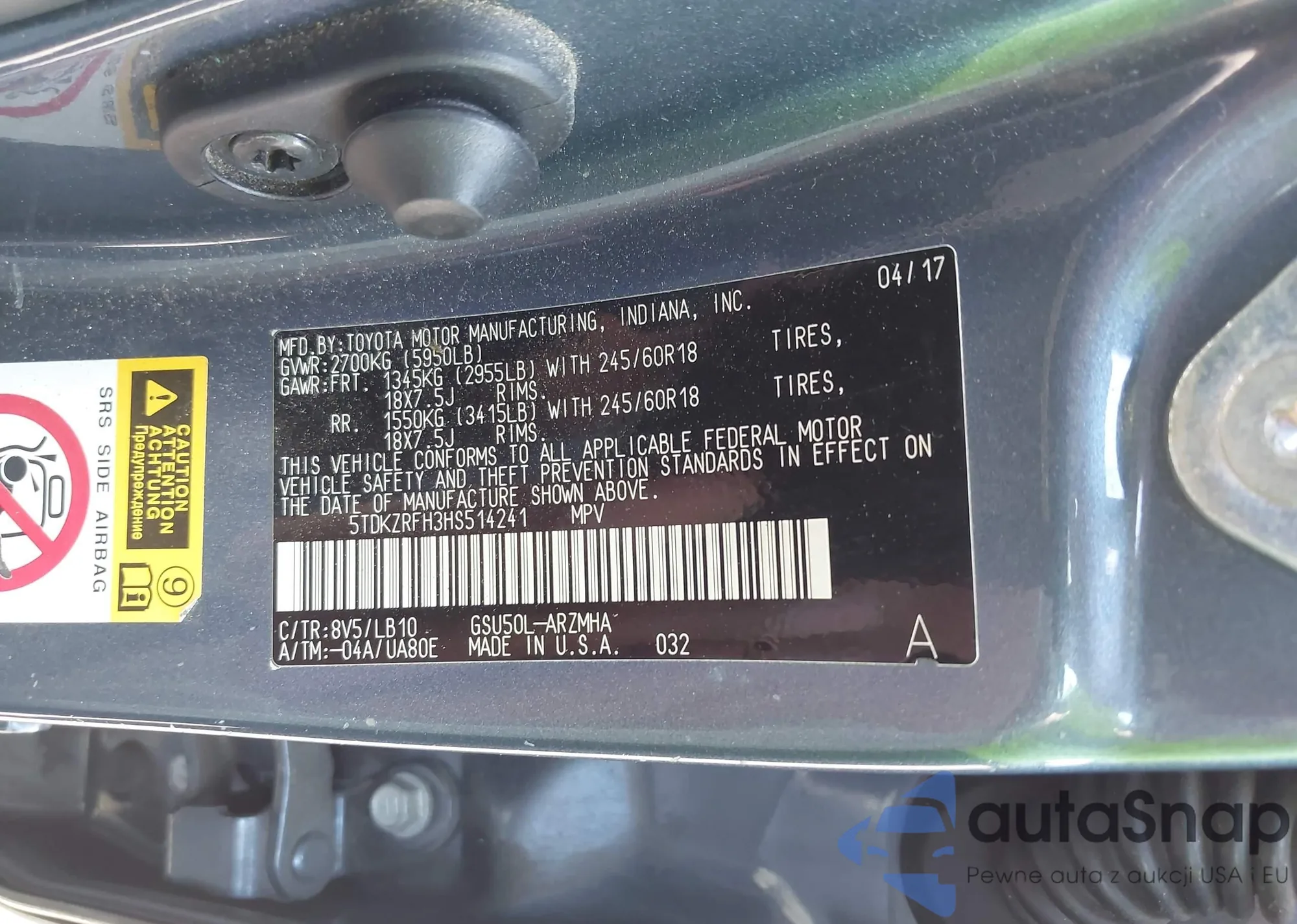 • VIN 5TDKZRFH3HS514241