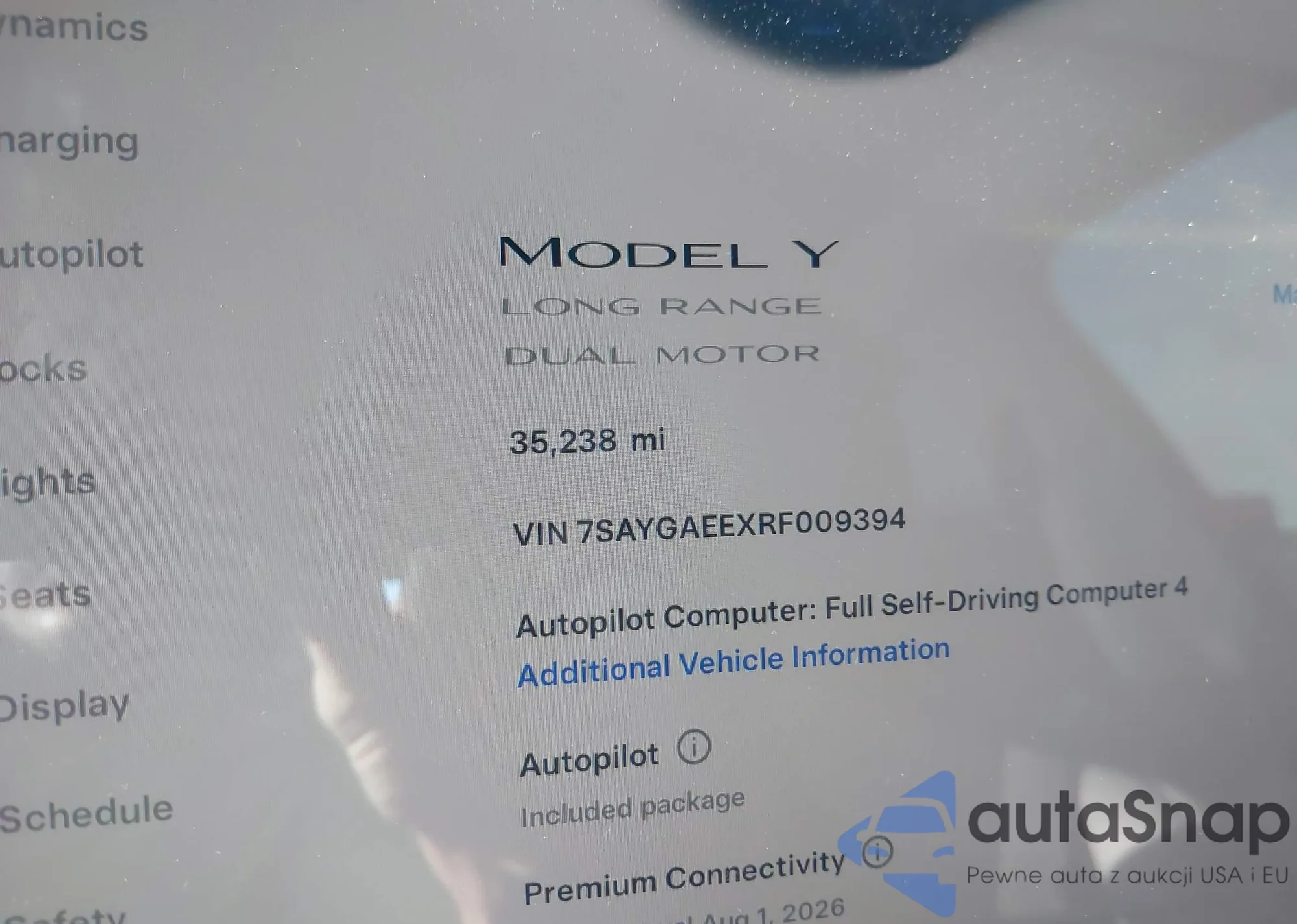 2024 Tesla Model Y Long Range Dual Motor All-Wheel Drive z USA, uszkodzony, nr VIN 7SAYGAEEXRF009394