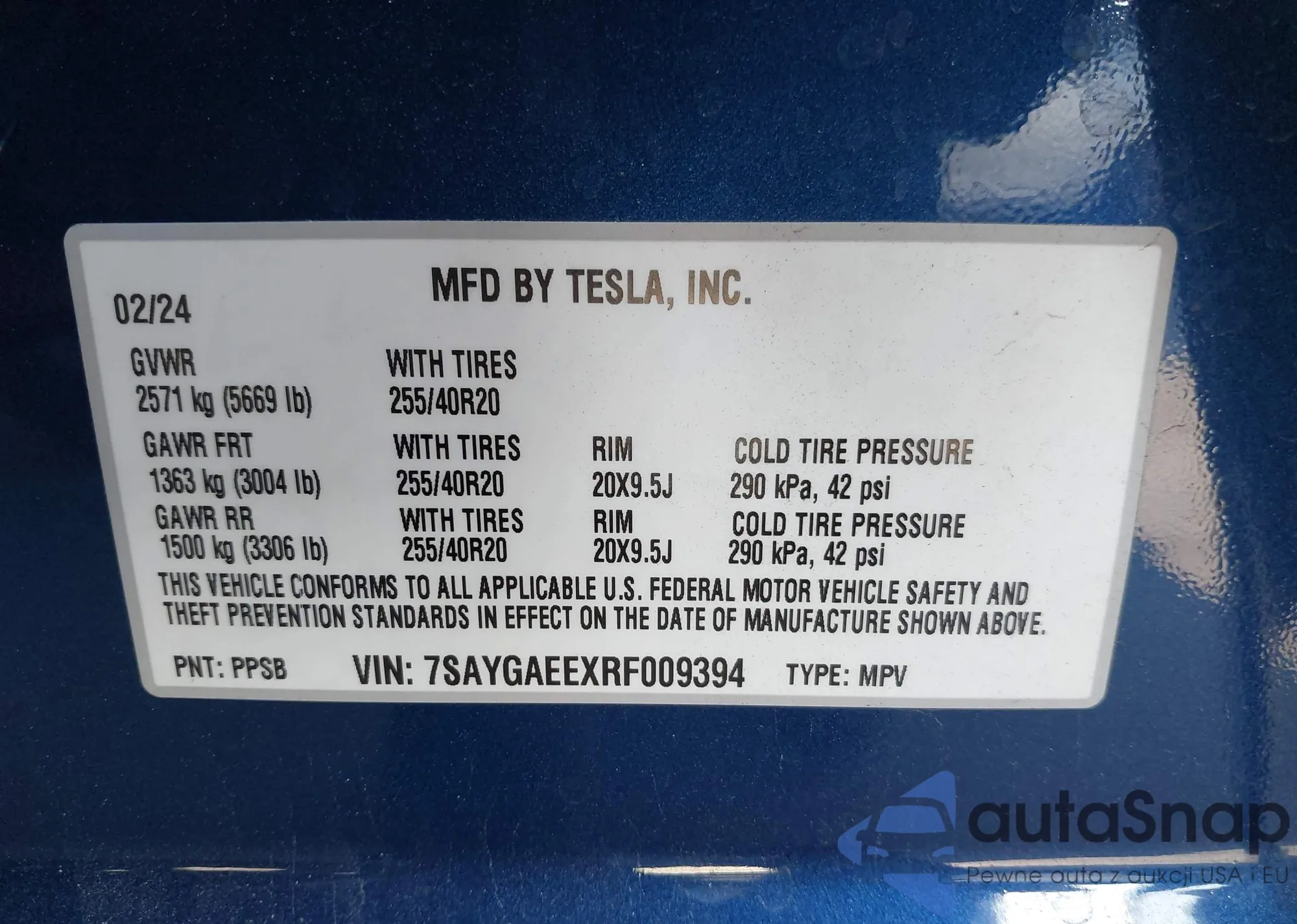 • VIN 7SAYGAEEXRF009394