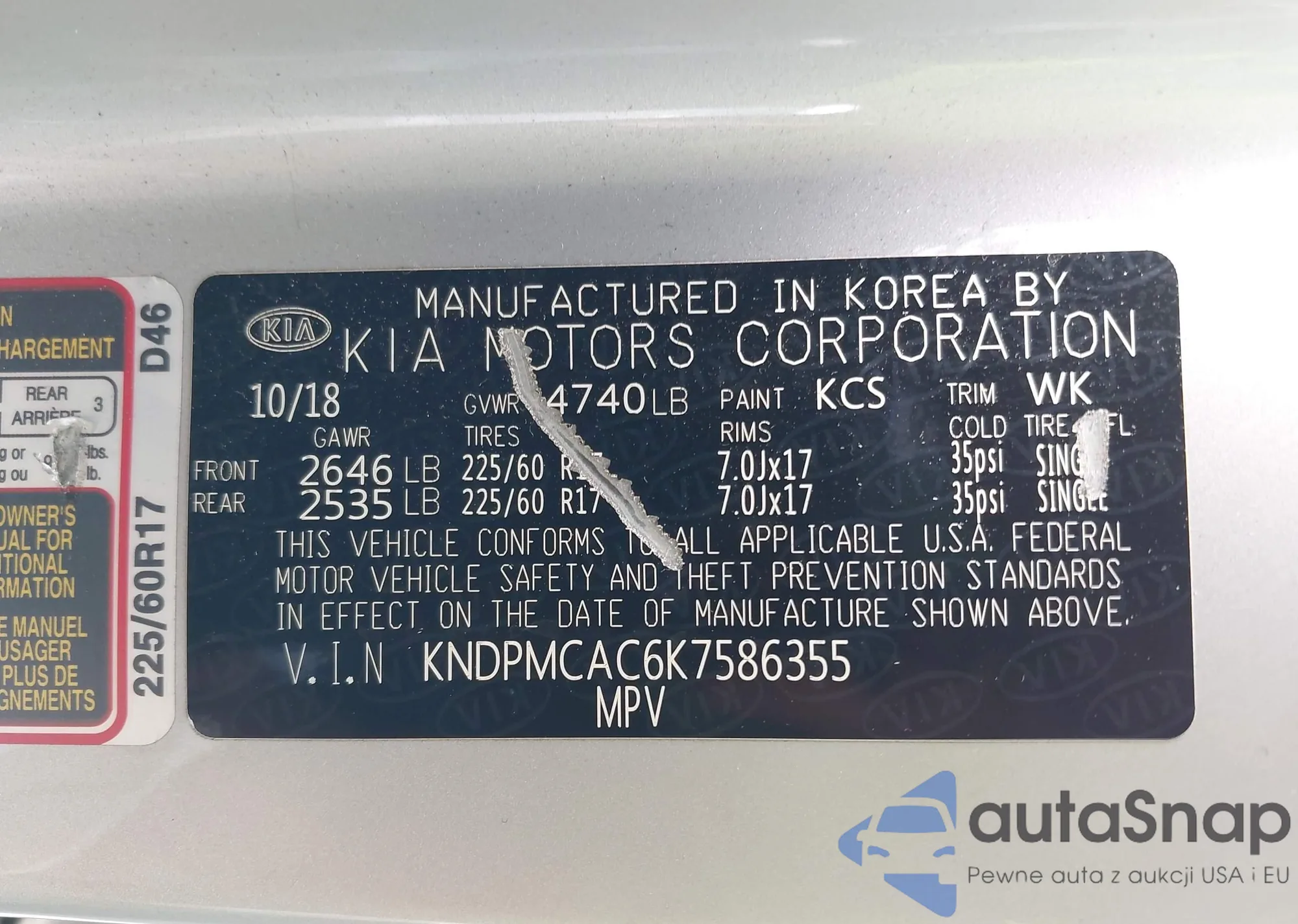 • VIN KNDPMCAC6K7586355