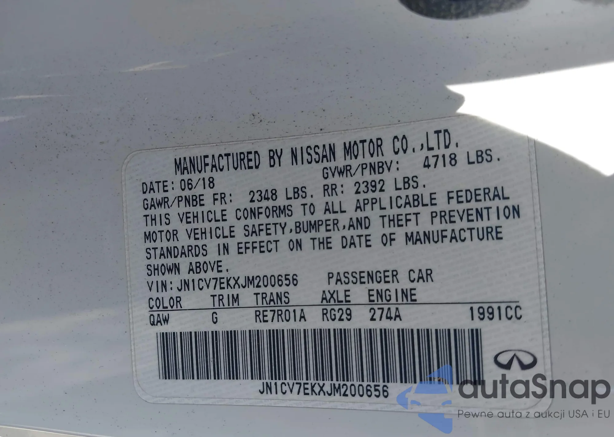 LOT: 43002256 VIN: JN1CV7EKXJM200656