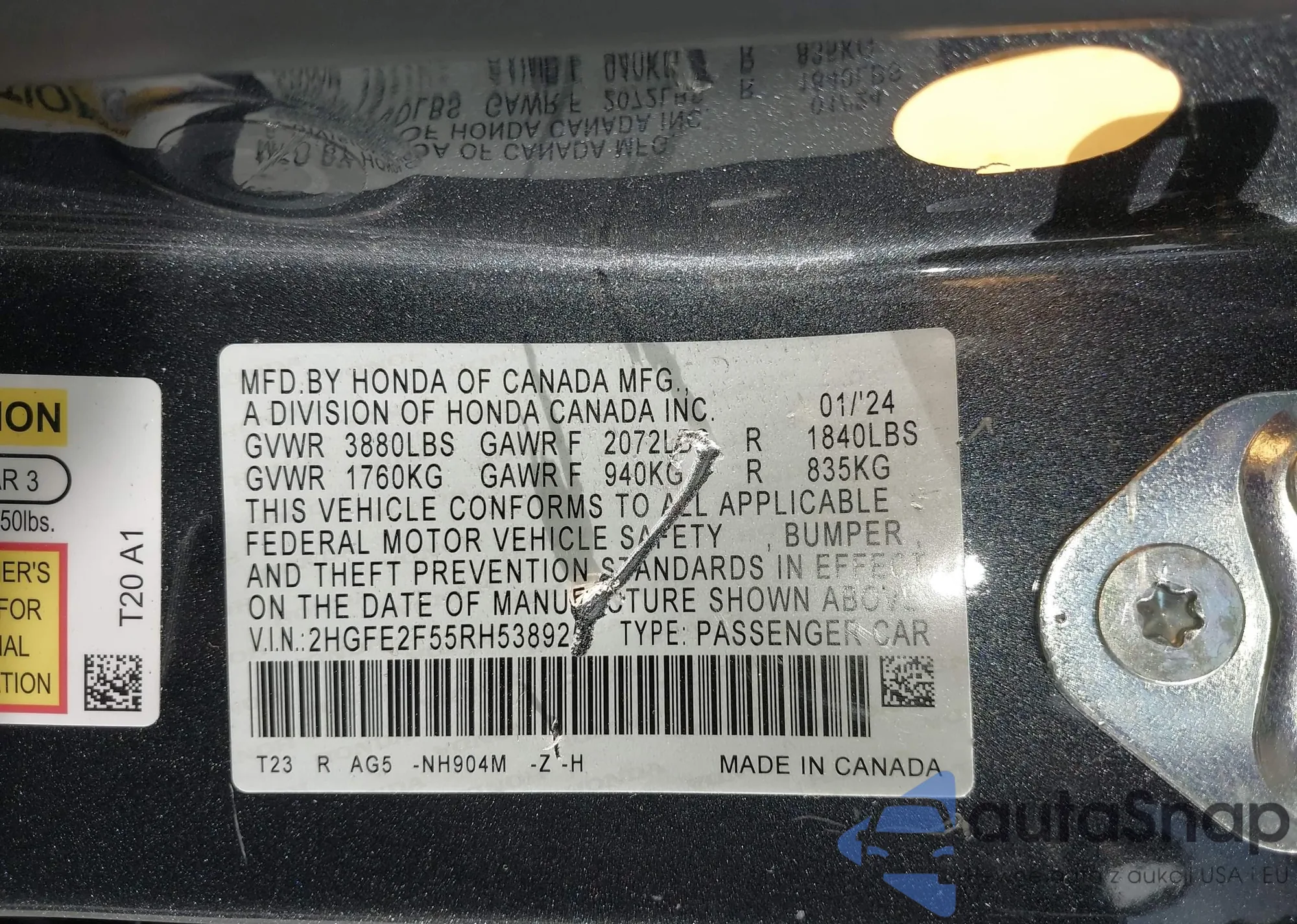 • VIN 2HGFC4B0XJH305607