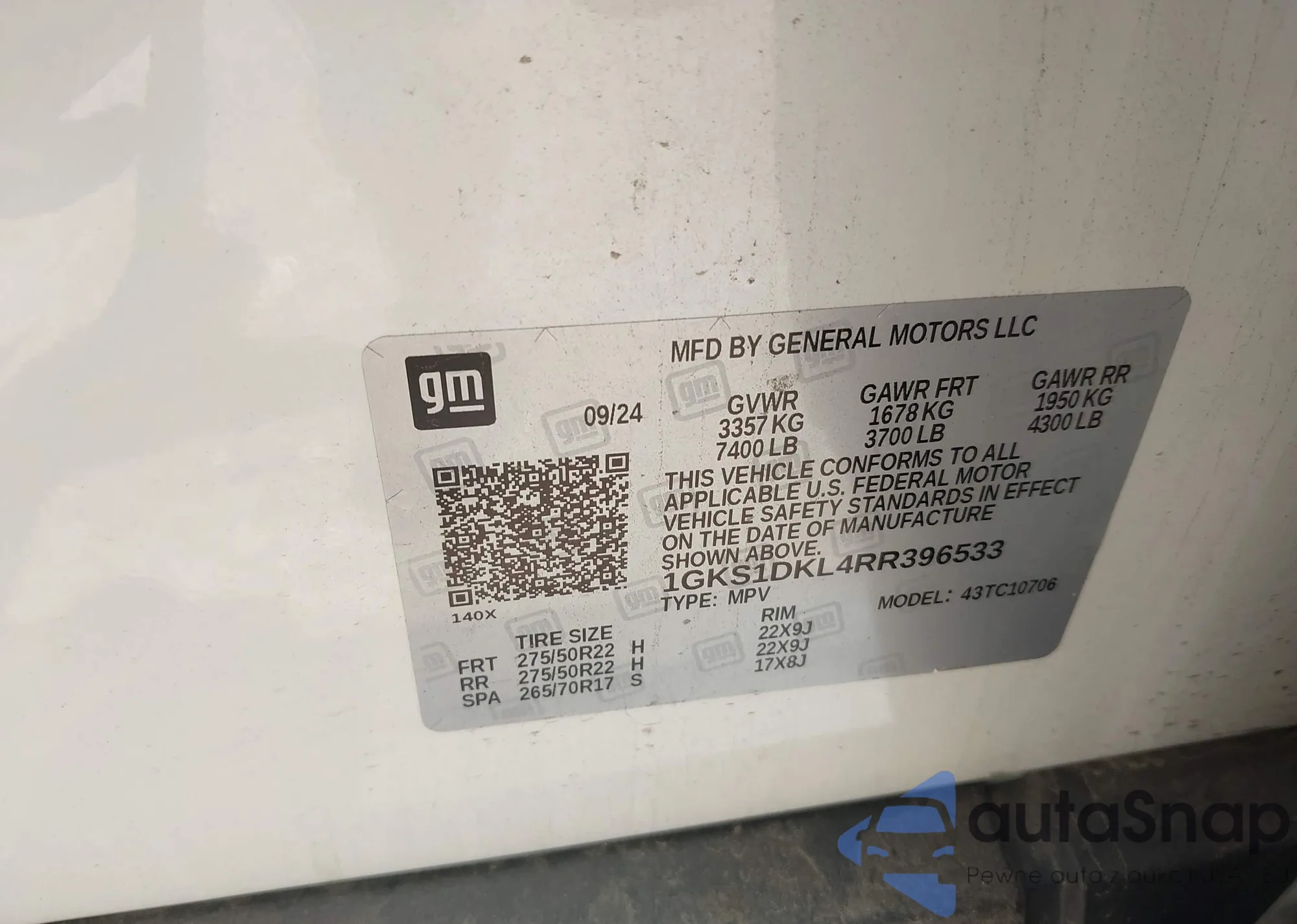 LOT: 43059898 VIN: 1GNSKEKL0RR179373