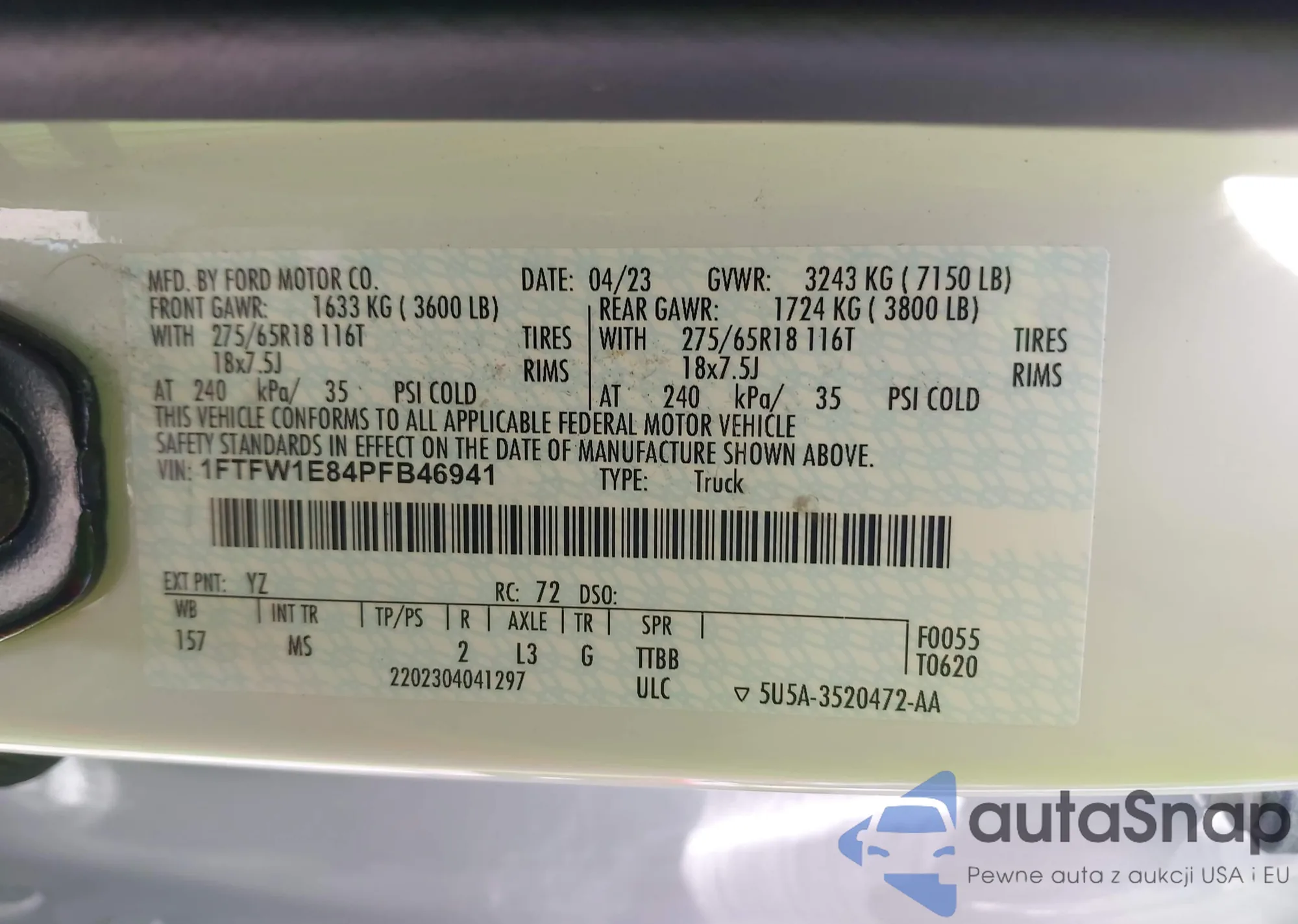 LOT: 42190639 VIN: 1FTFW1E84PFB46941