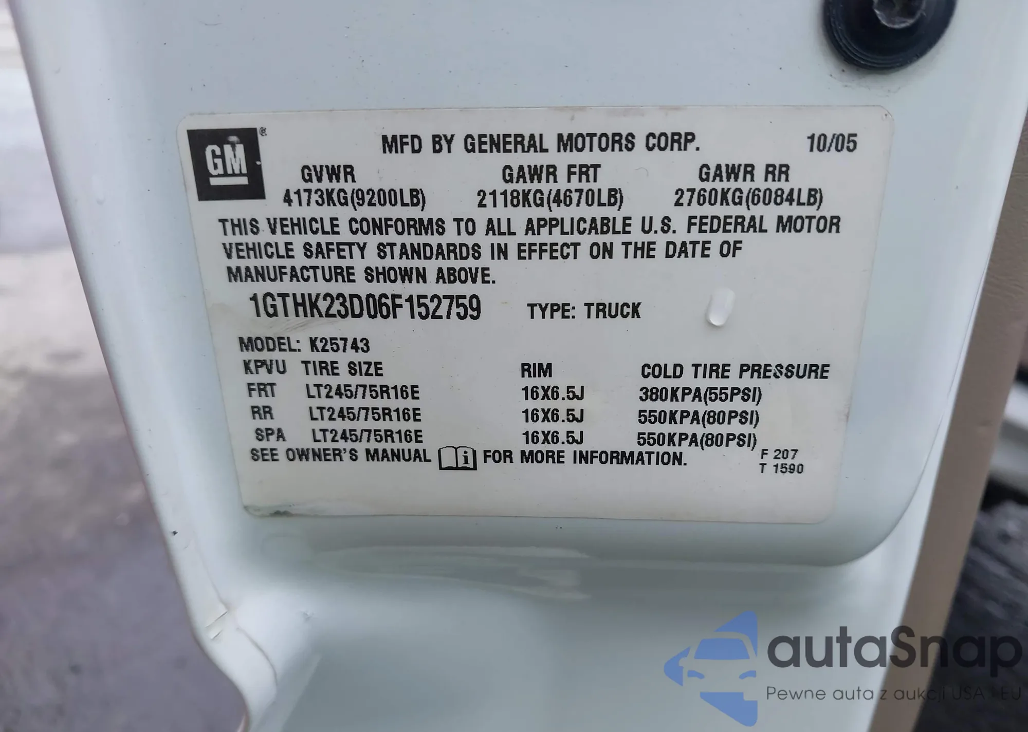• VIN 1GTHK23D06F152759