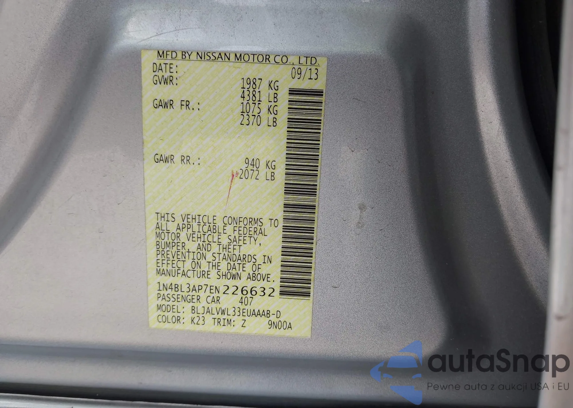 LOT: 42713436 VIN: JA4ARUAU4PU012491