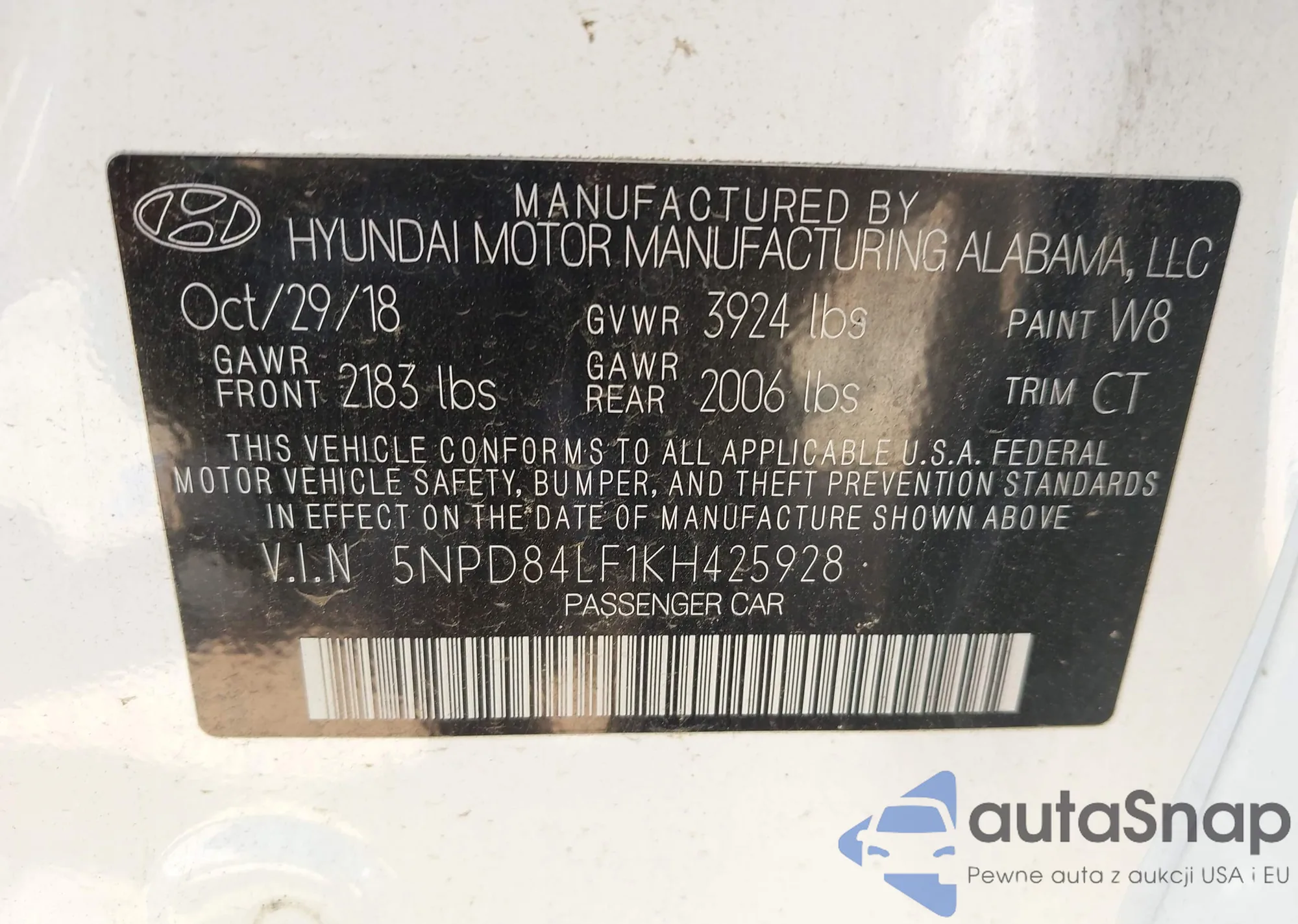 • VIN 5NPD84LF1KH425928