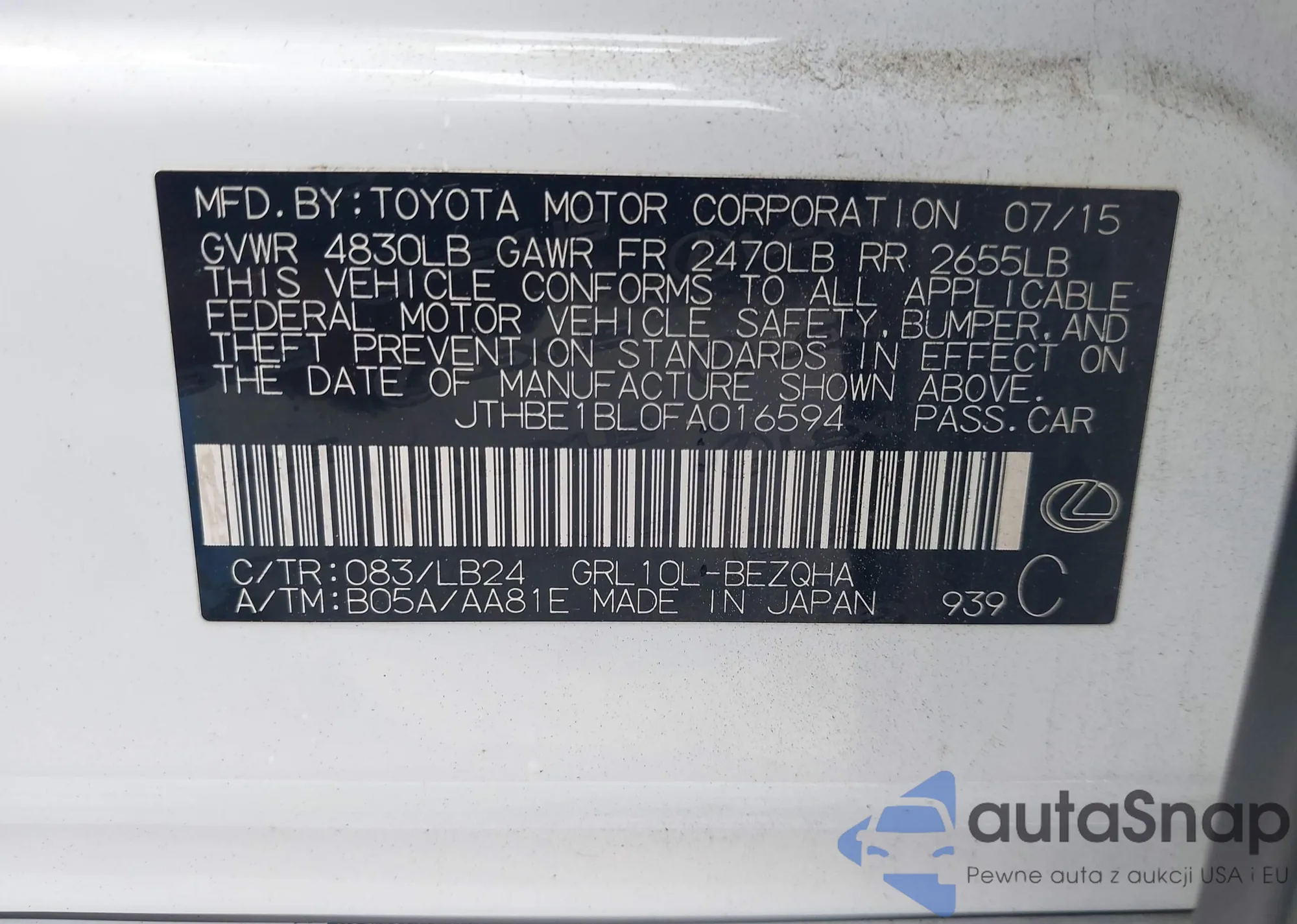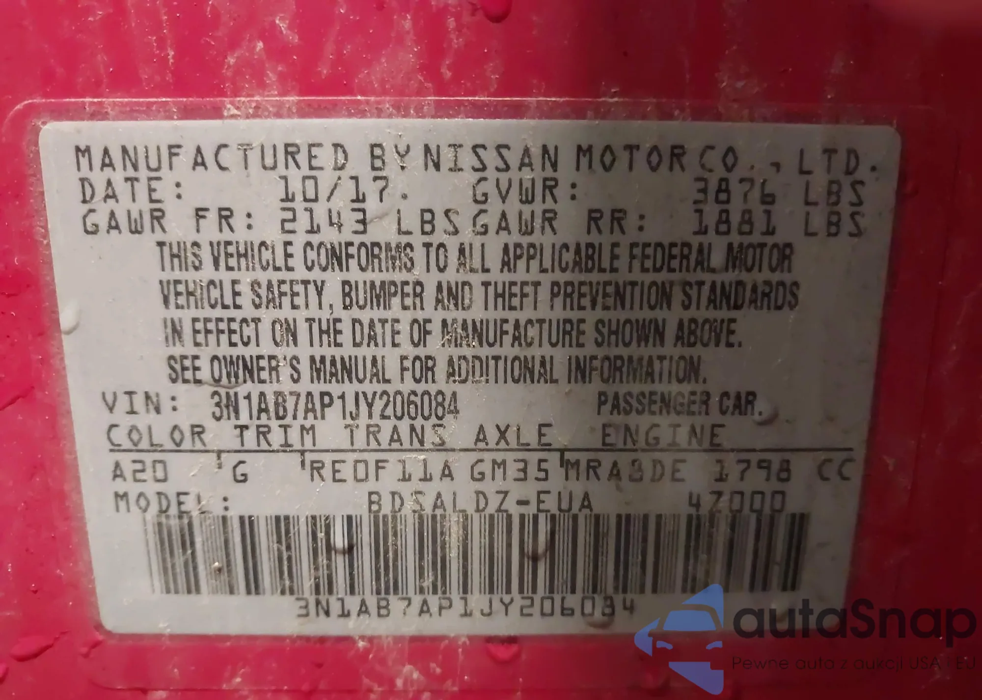 LOT: 42442196 VIN: 1HGCV1F45MA079021