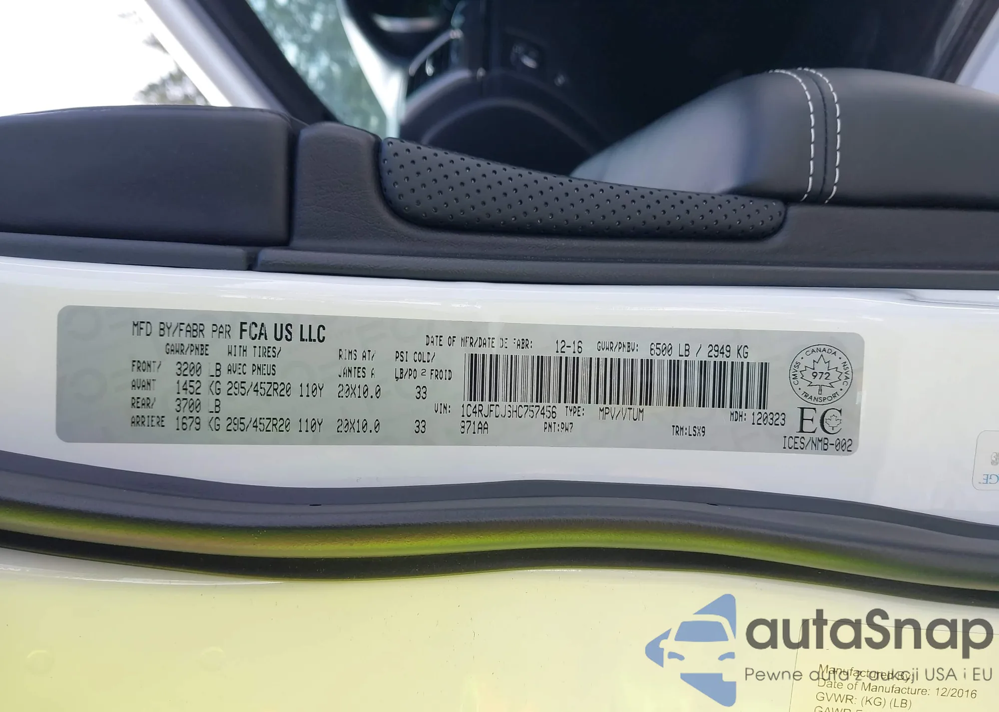 • VIN 1C4RJFDJ6HC757456
