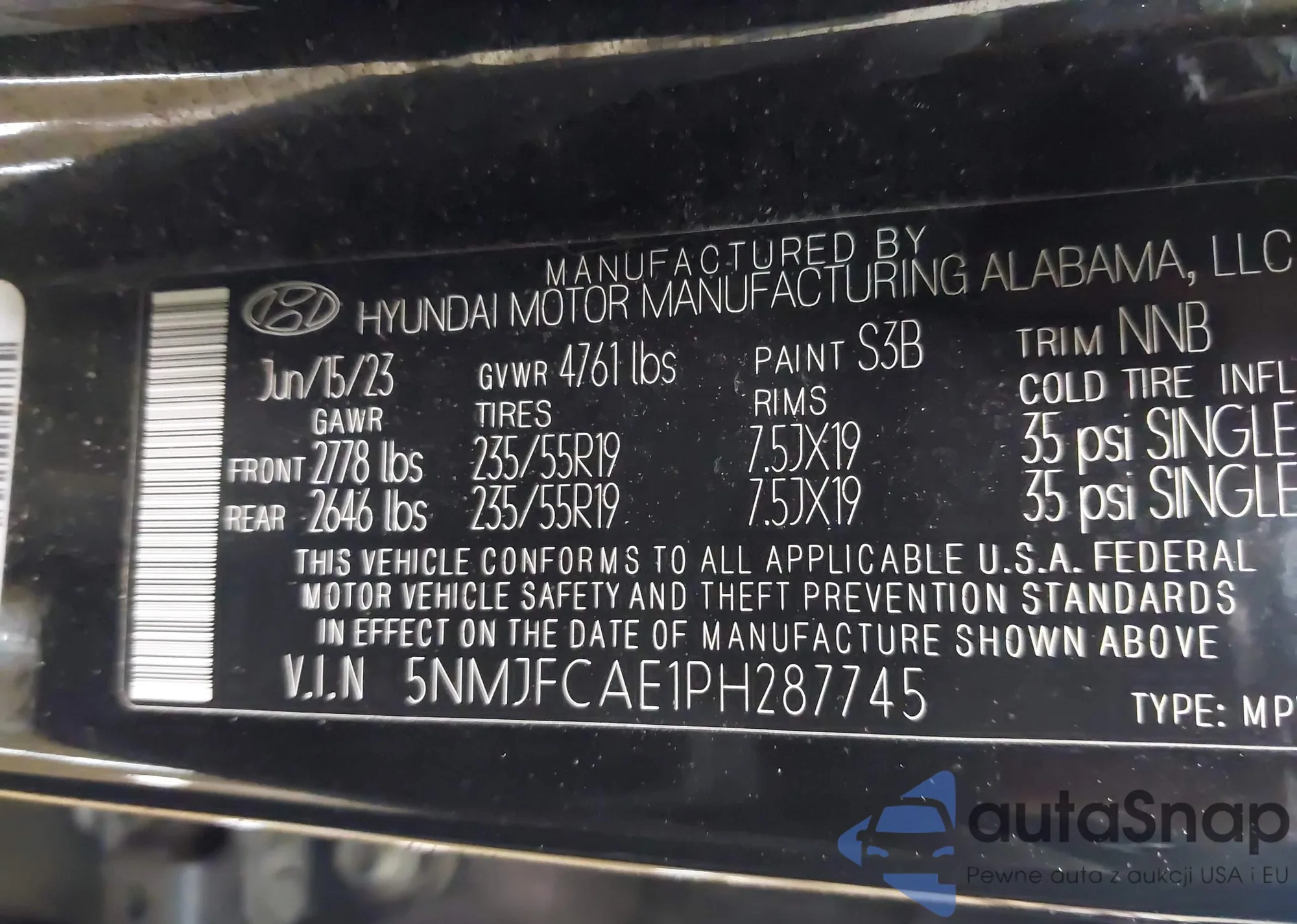 • VIN 5NMJFCAE1PH287745