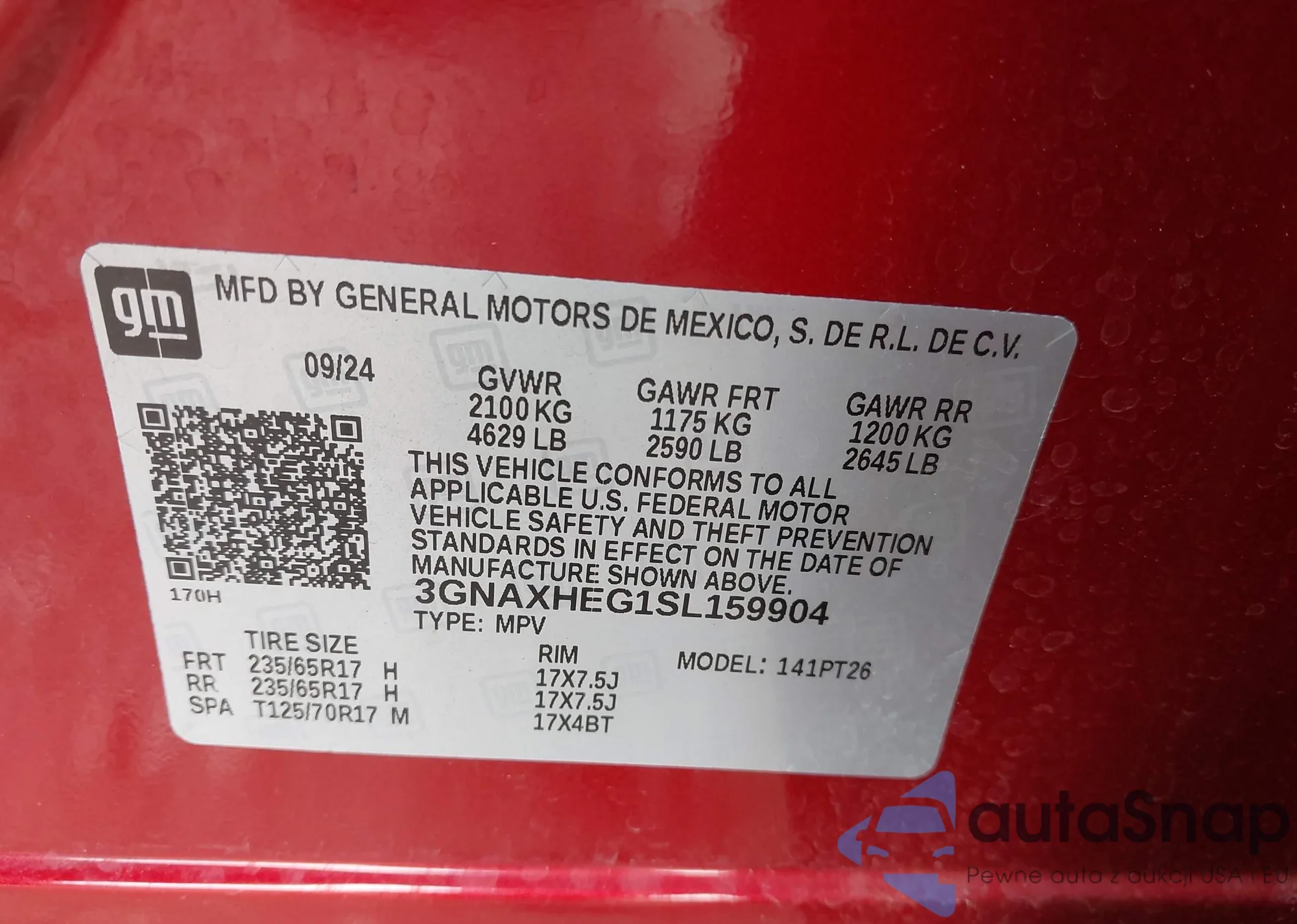 • VIN 5FNRL5H93GB164269