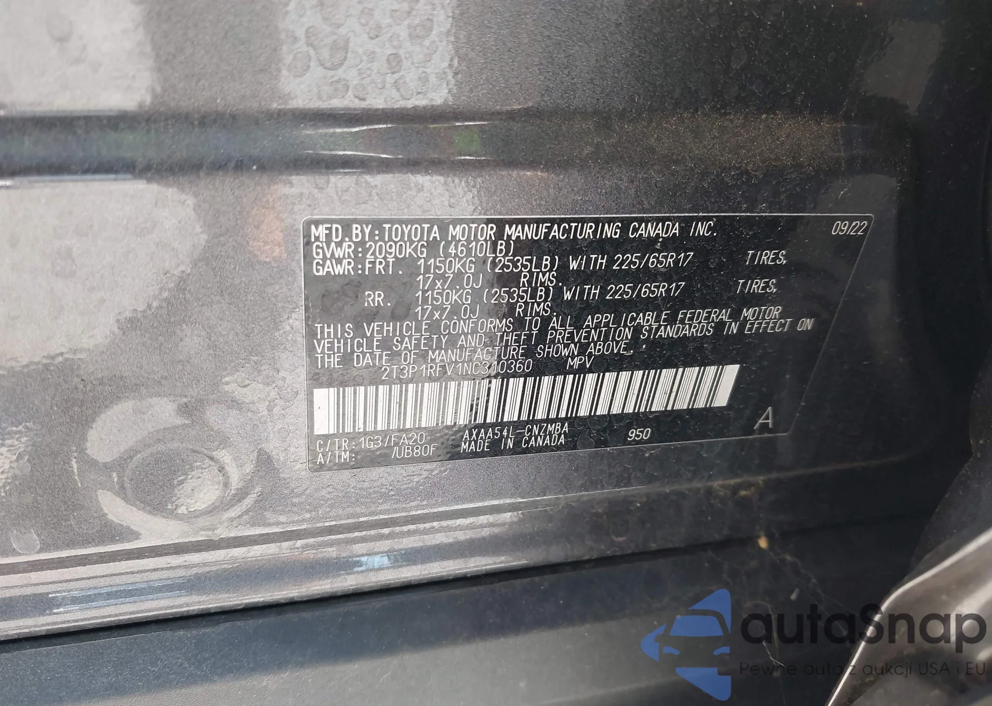 • VIN 2T3P1RFV1NC310360