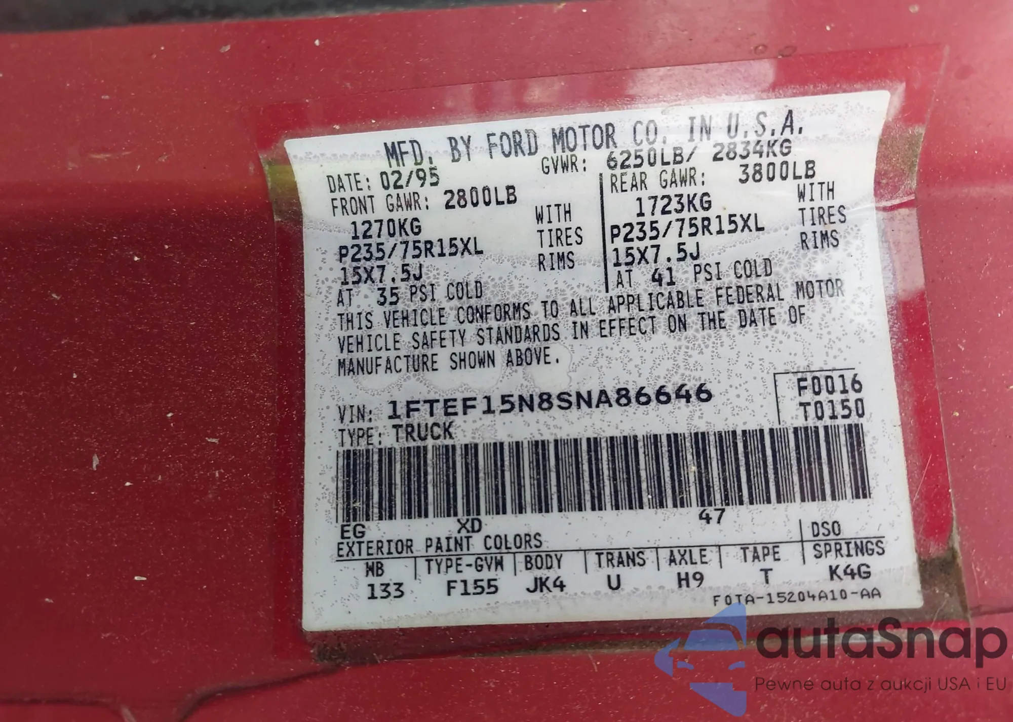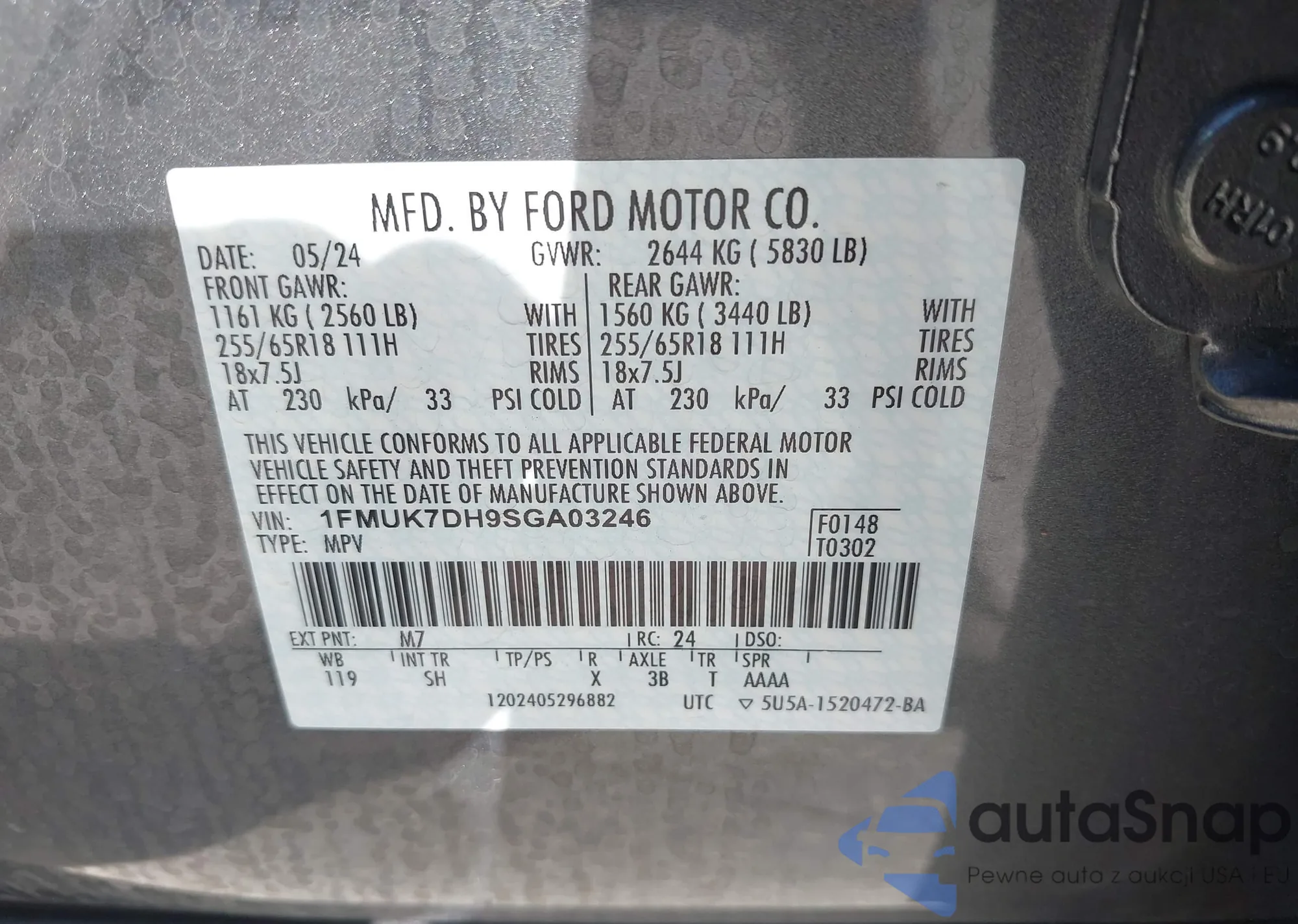 • VIN 1FMUK7DH9SGA03246