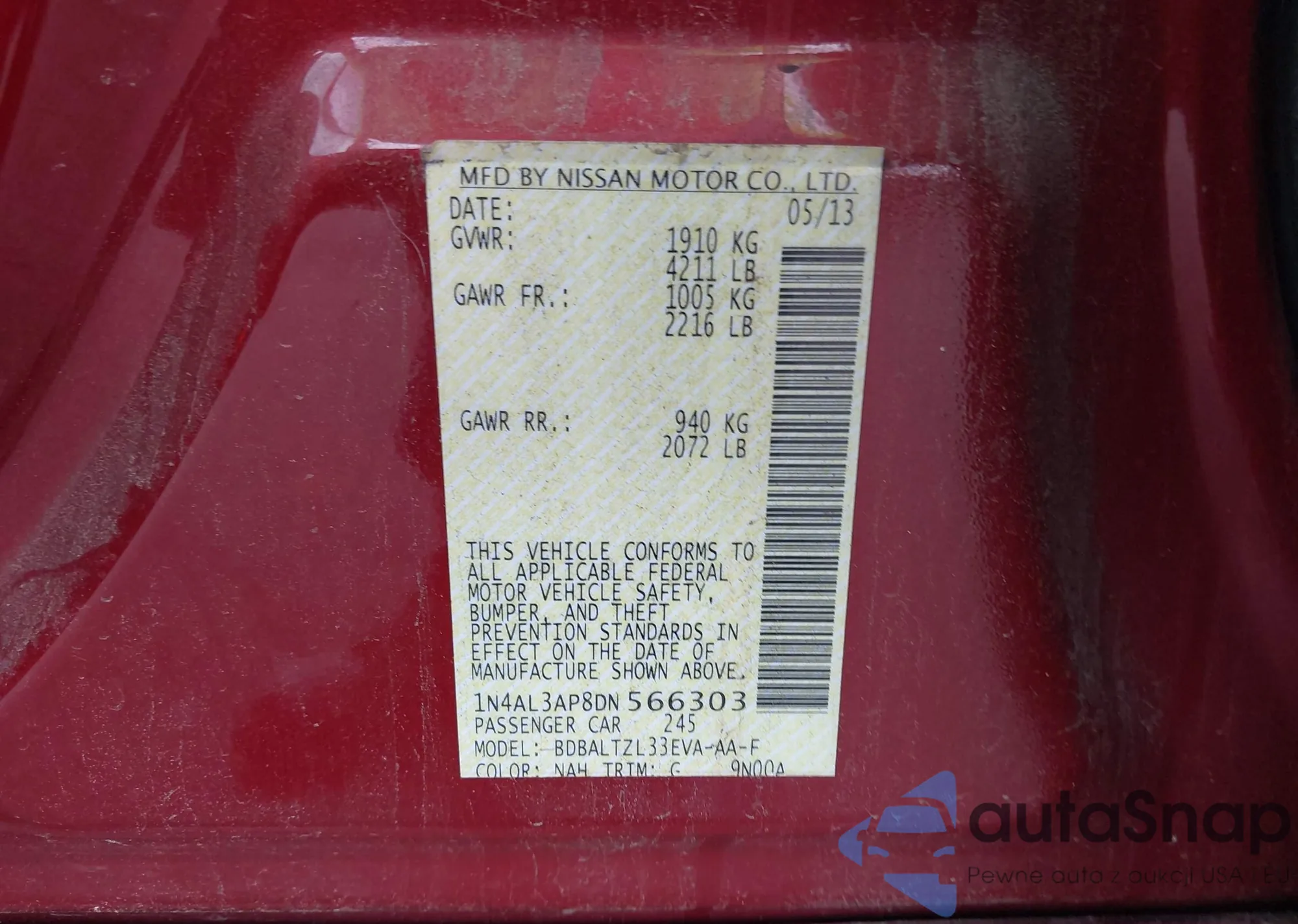 LOT: 42947049 VIN: 1N4BA41EX8C806550