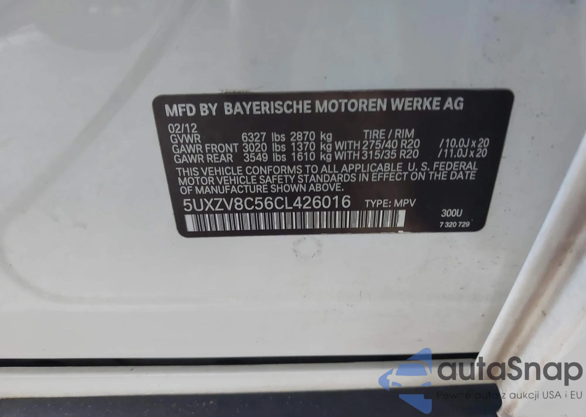 • VIN 5UXZV8C56CL426016