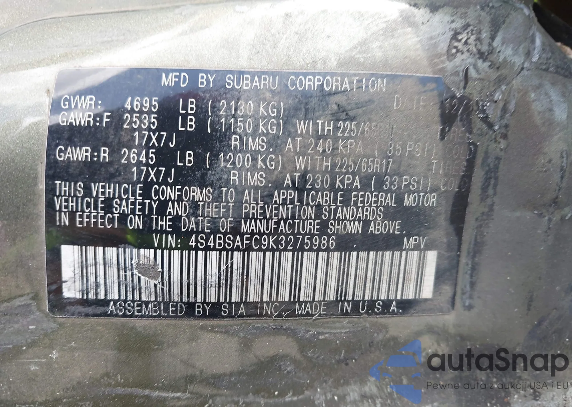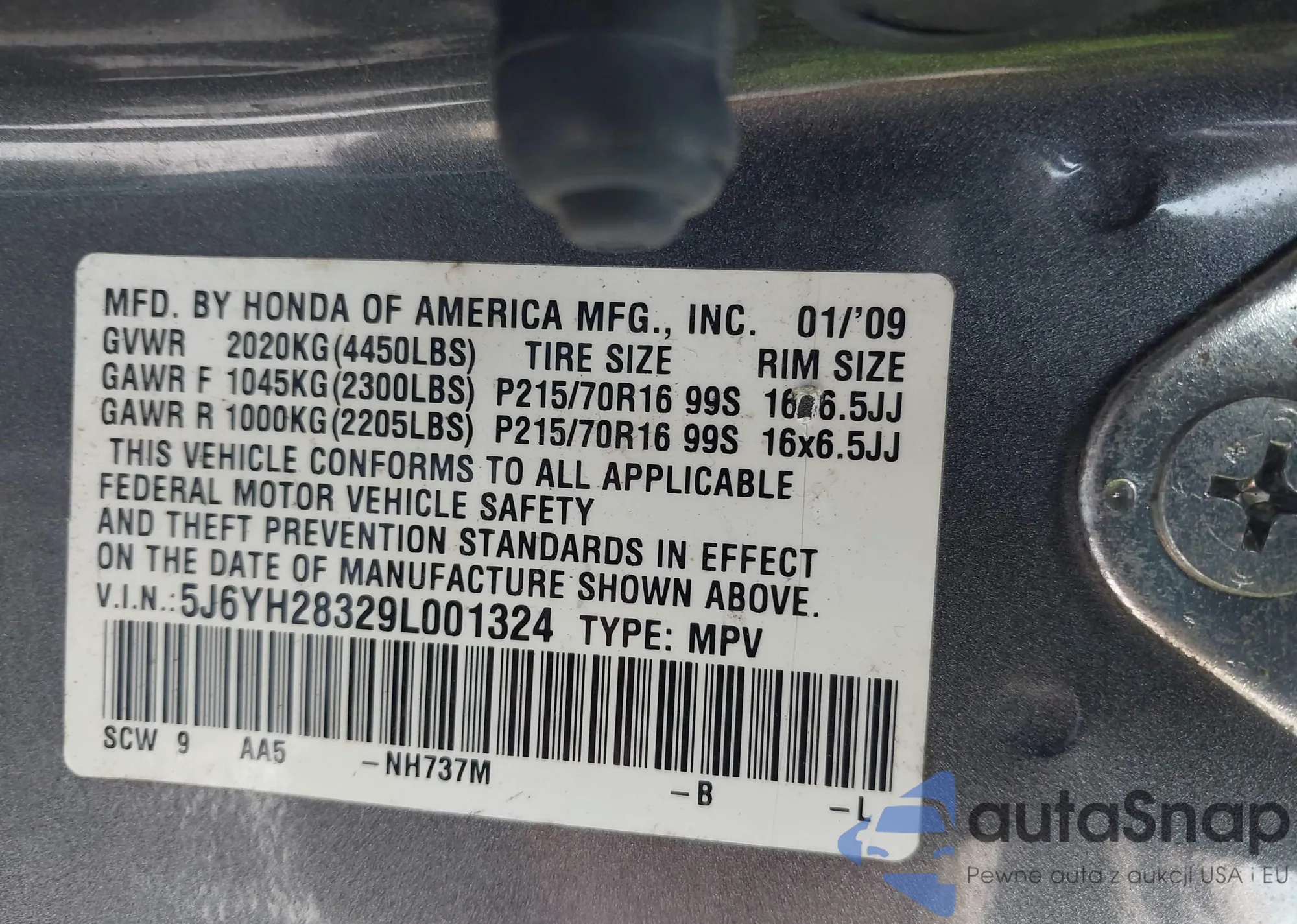 • VIN 2HKRS4H71SH483935
