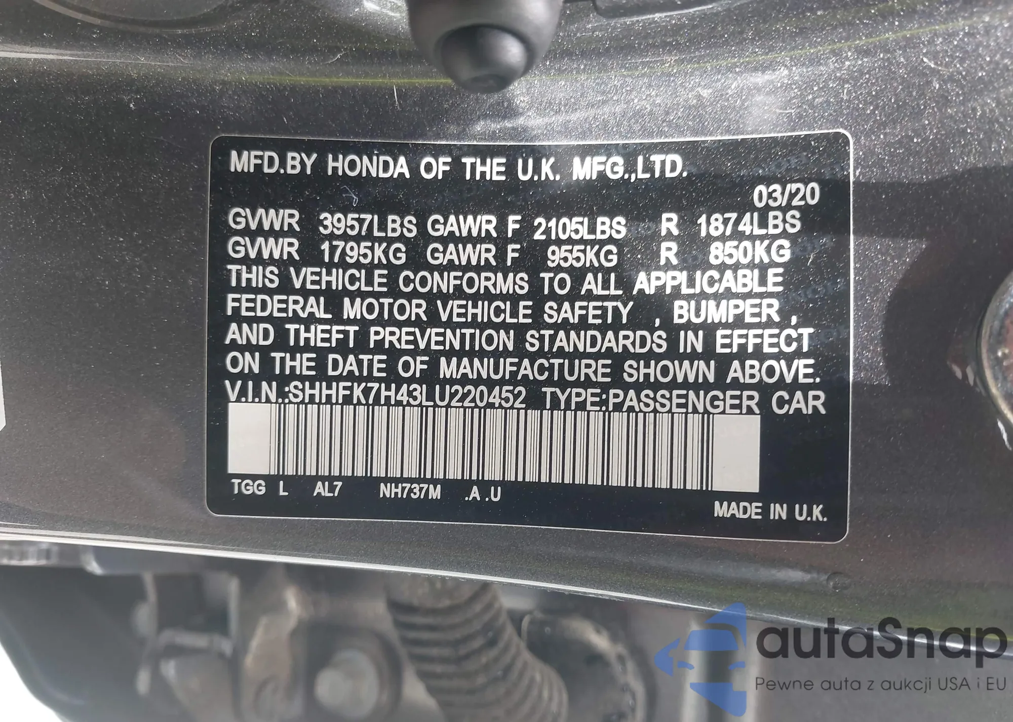 • VIN SHHFK7H43LU220452