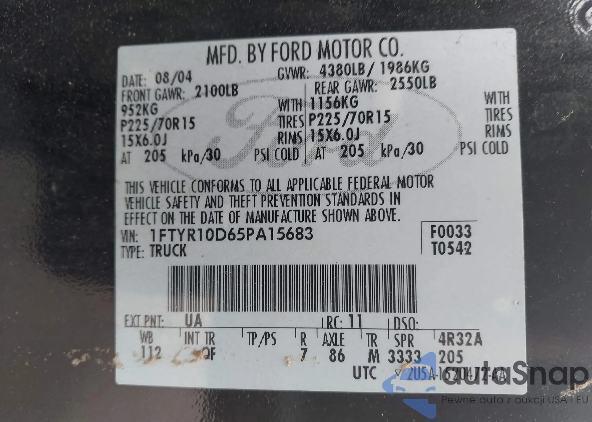 LOT: 42981352 VIN: 1FTYR10D65PA15683