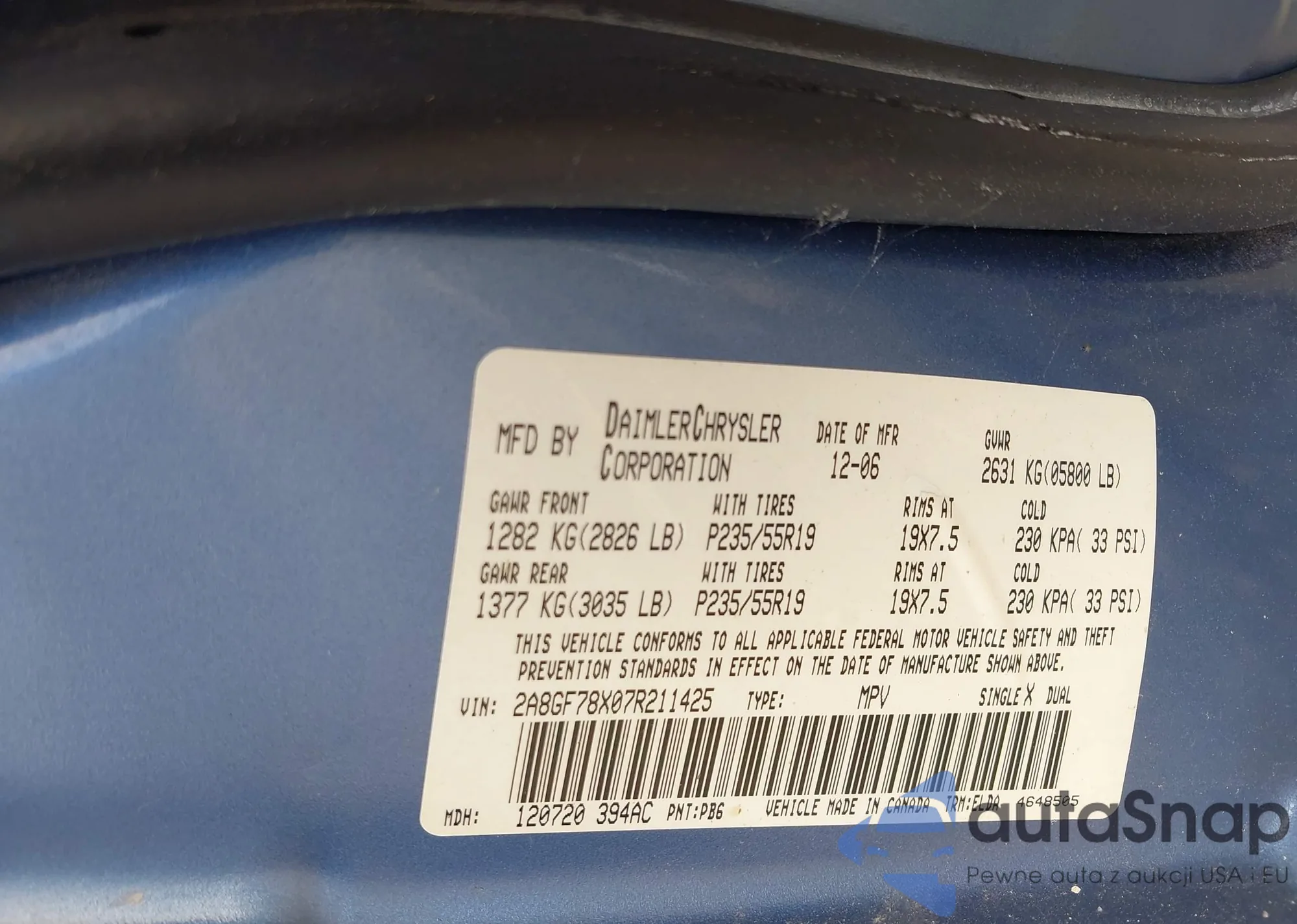 • VIN 2A8GF78X07R211425