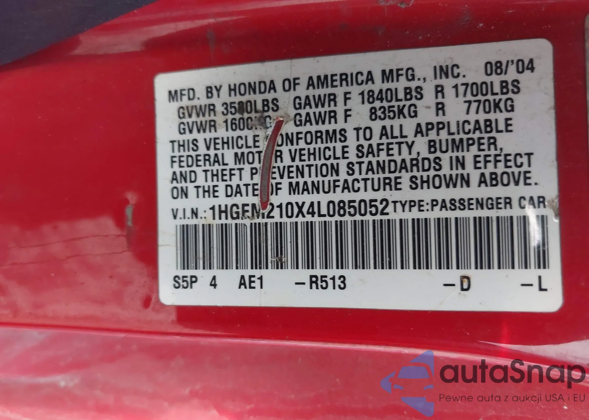 • VIN 1HGEM210X4L085052