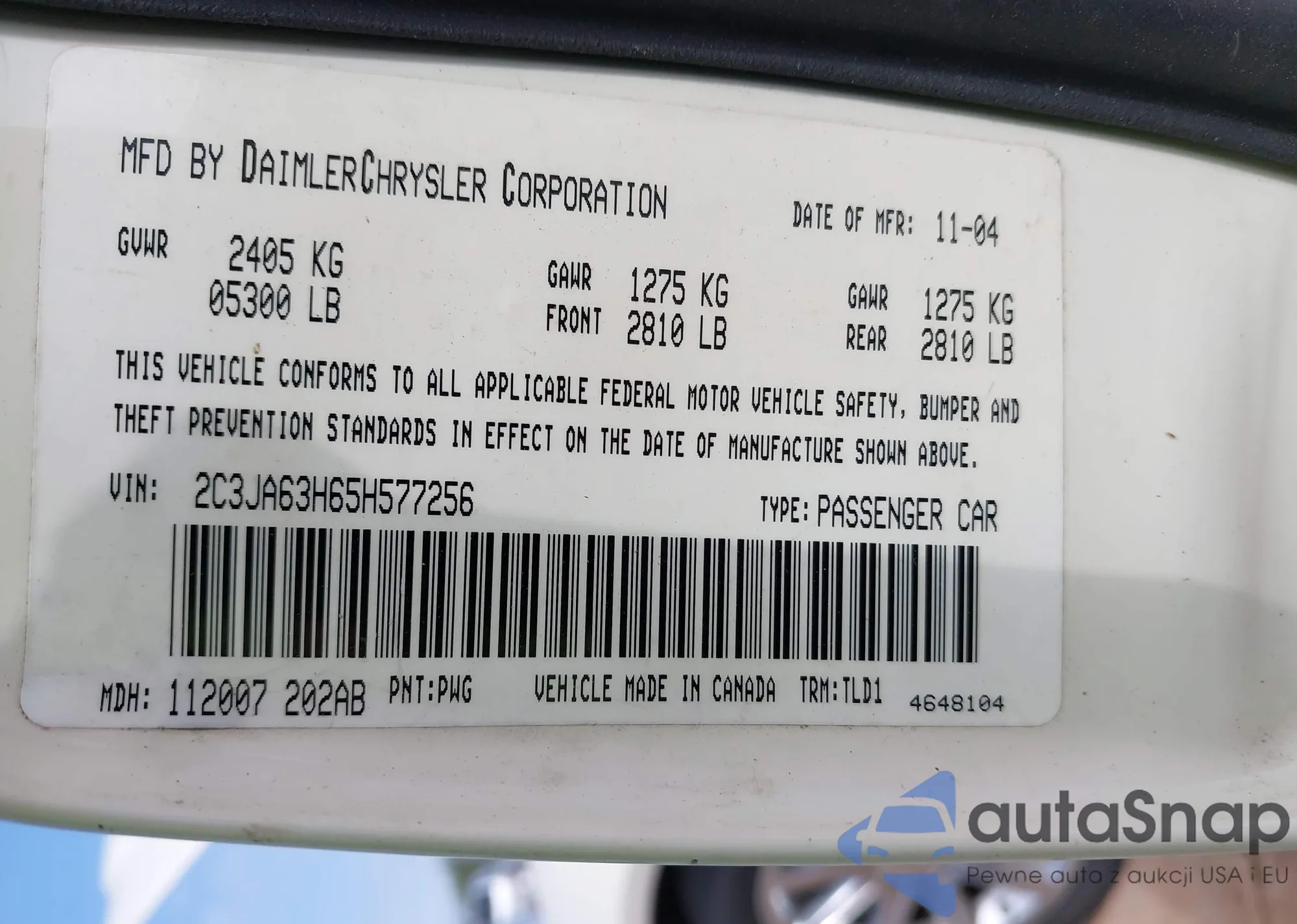 • VIN 2C3JA63H65H577256