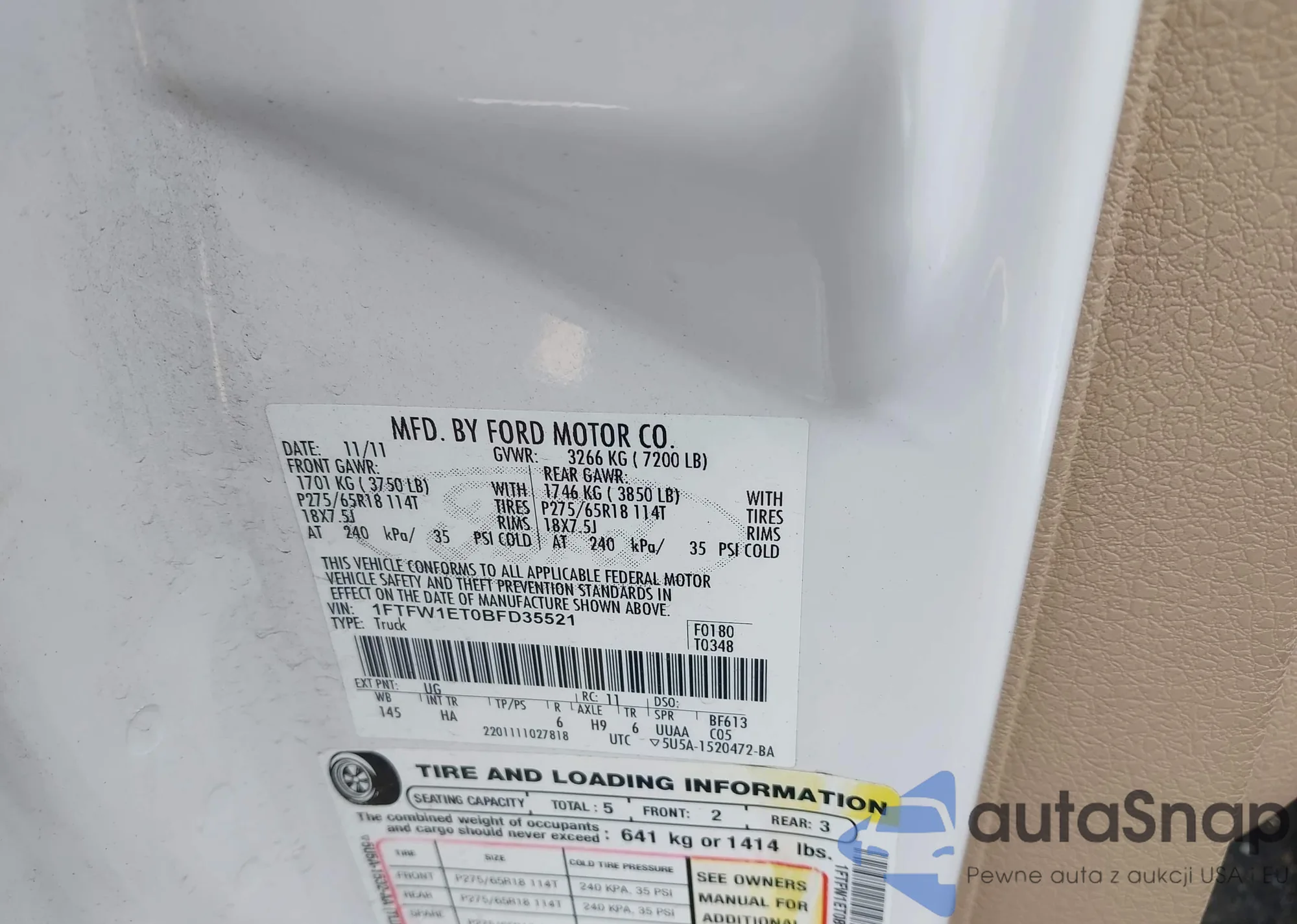 LOT: 42734522 VIN: 1FTFW1ET0BFD35521
