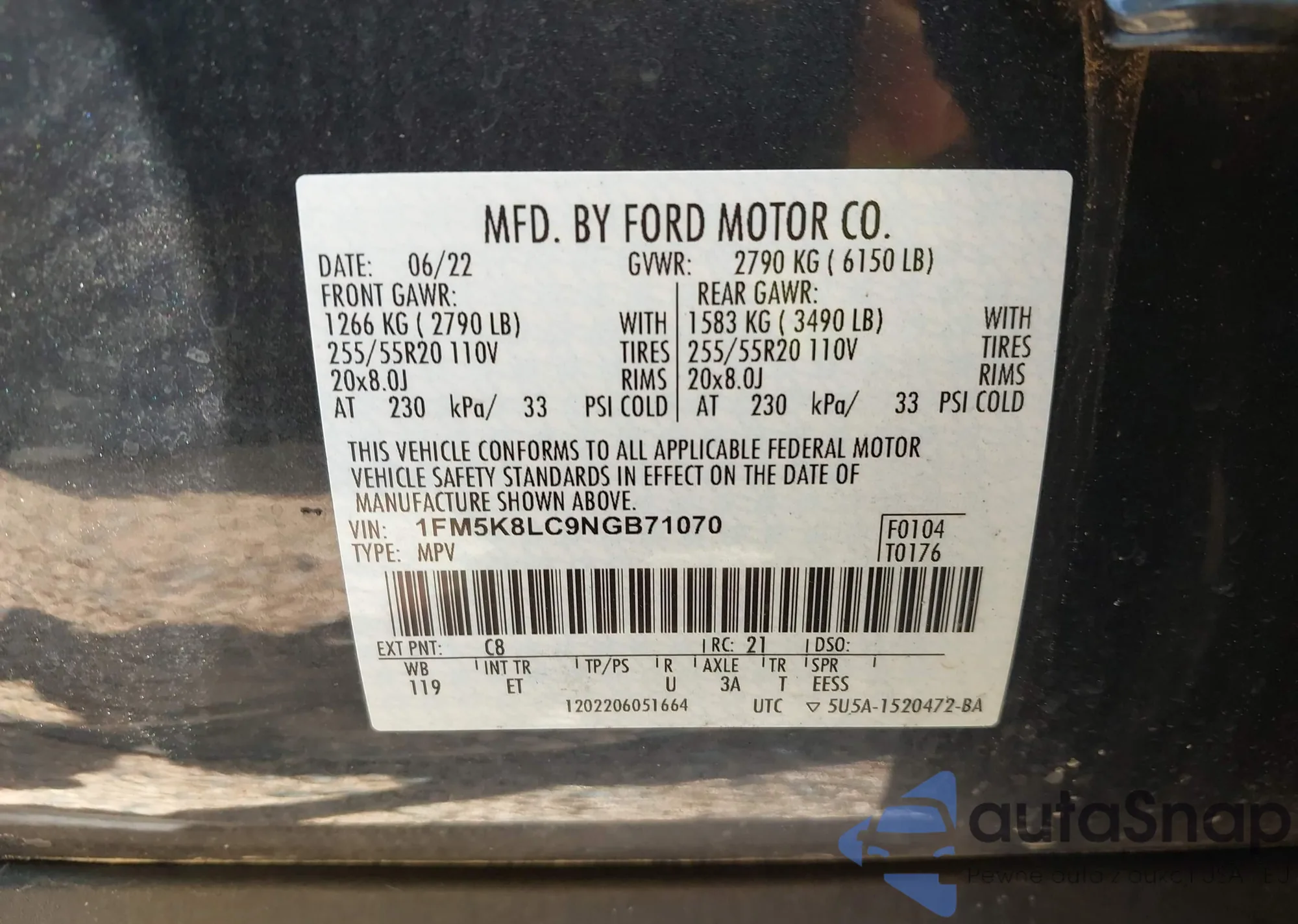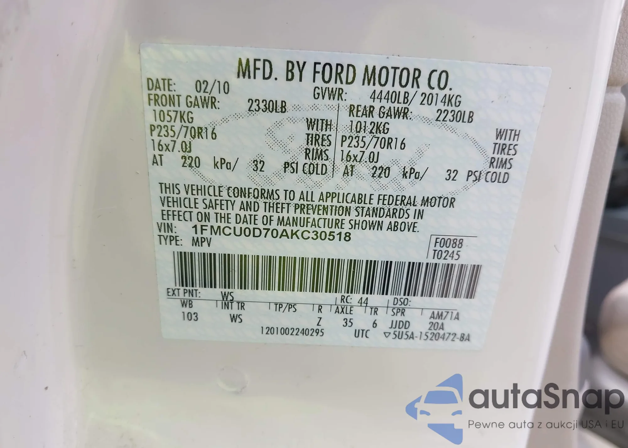 LOT: 42901990 VIN: 1FMCU0D70AKC30518