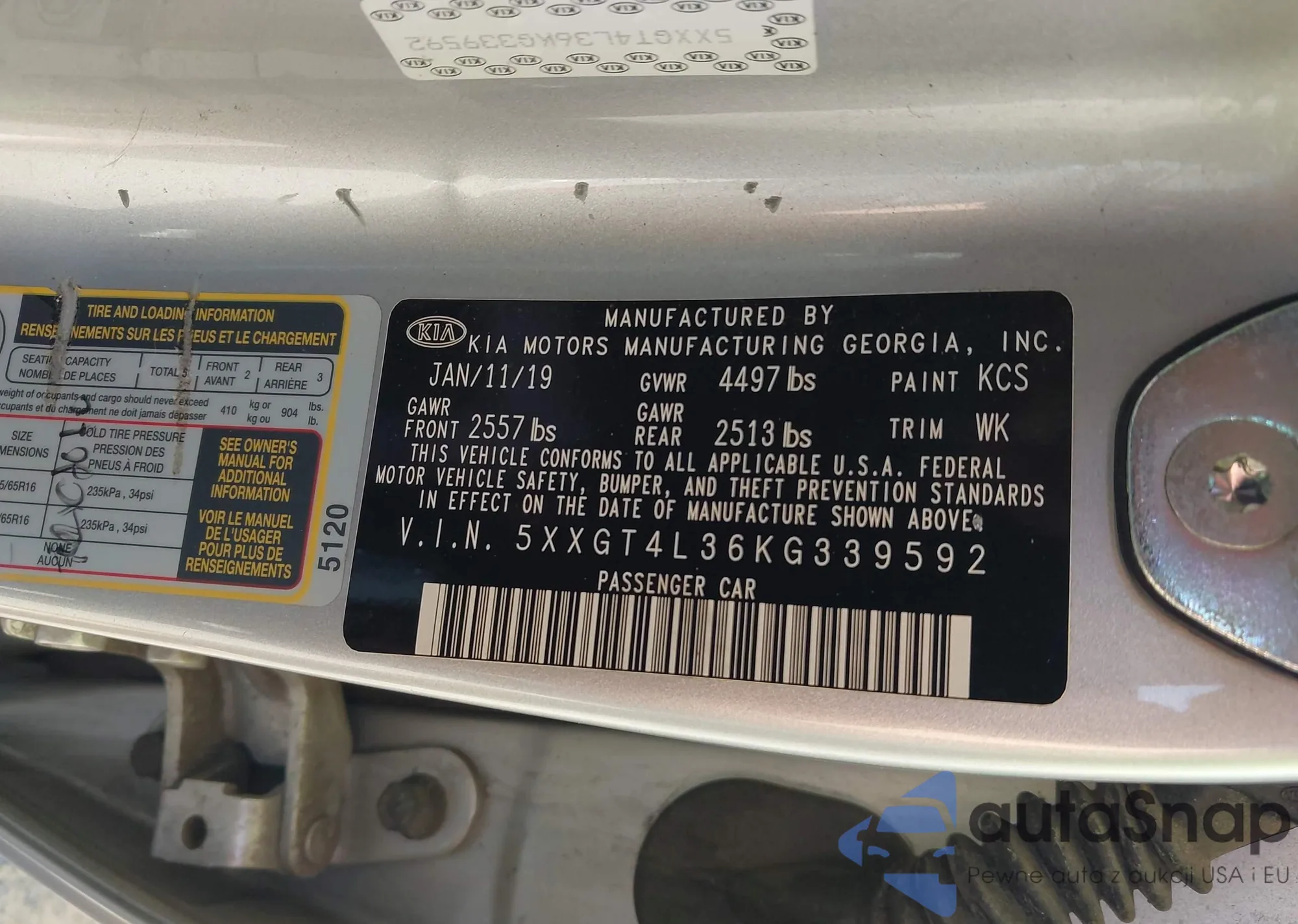 LOT: 42827225 VIN: 3KPF24AD6ME389785