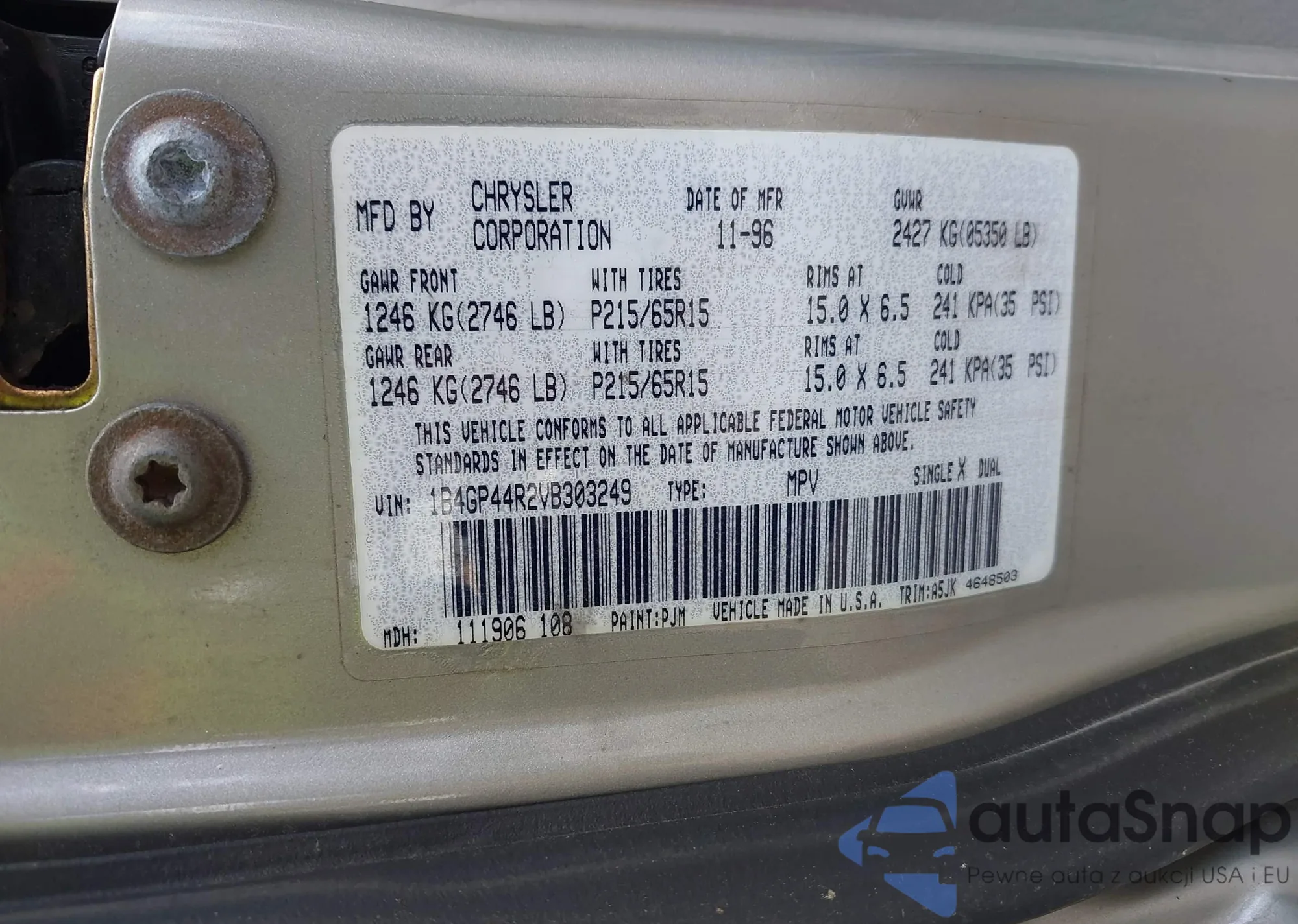 LOT: 42747176 VIN: 1B4GP44R2VB303249