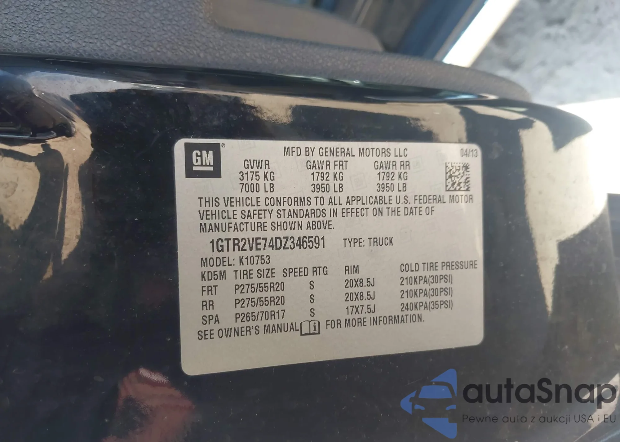 • VIN 1GTR2VE74DZ346591