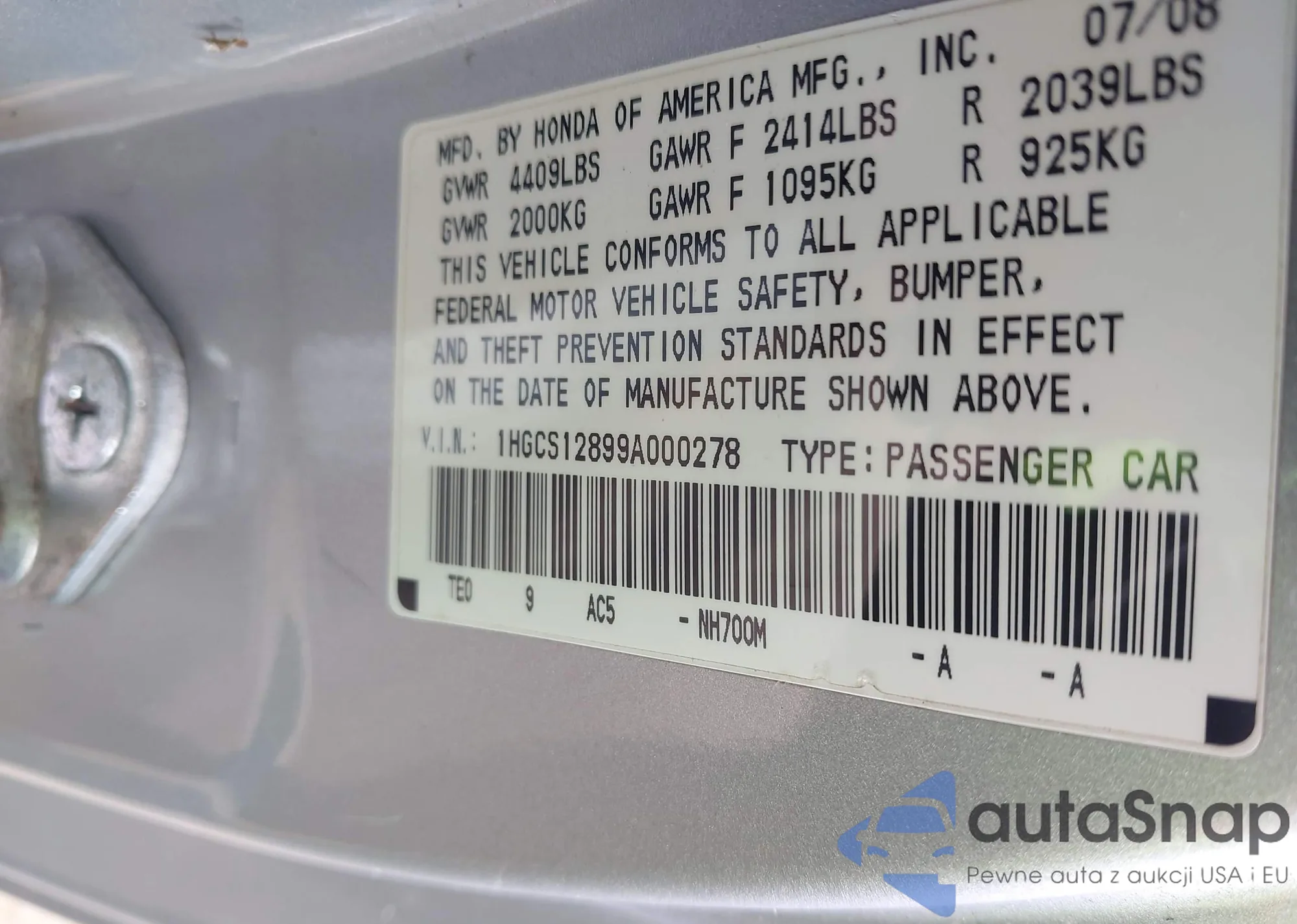LOT: 43068980 VIN: 2T2HK31U87C030469
