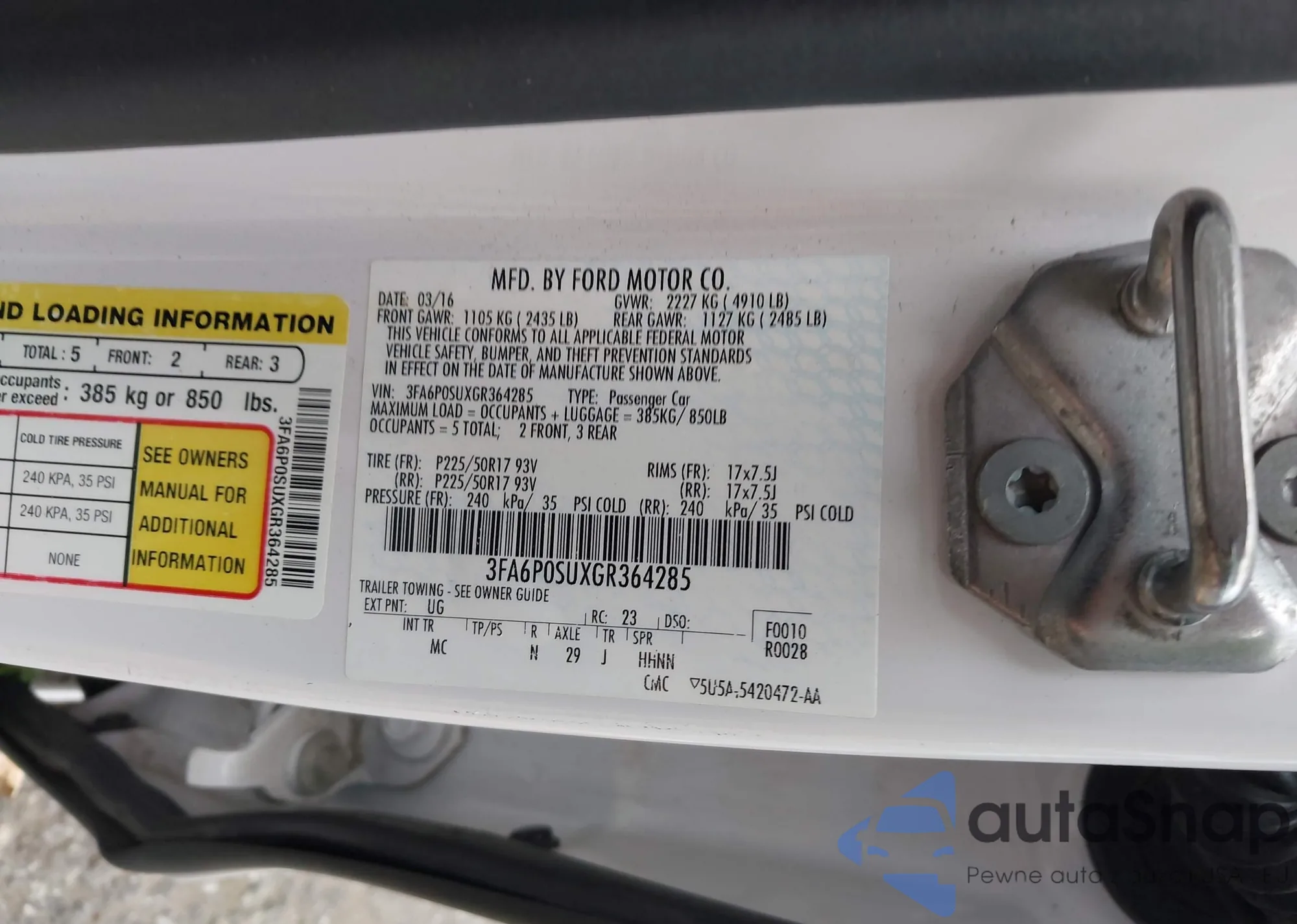 • VIN 3FA6P0SUXGR364285
